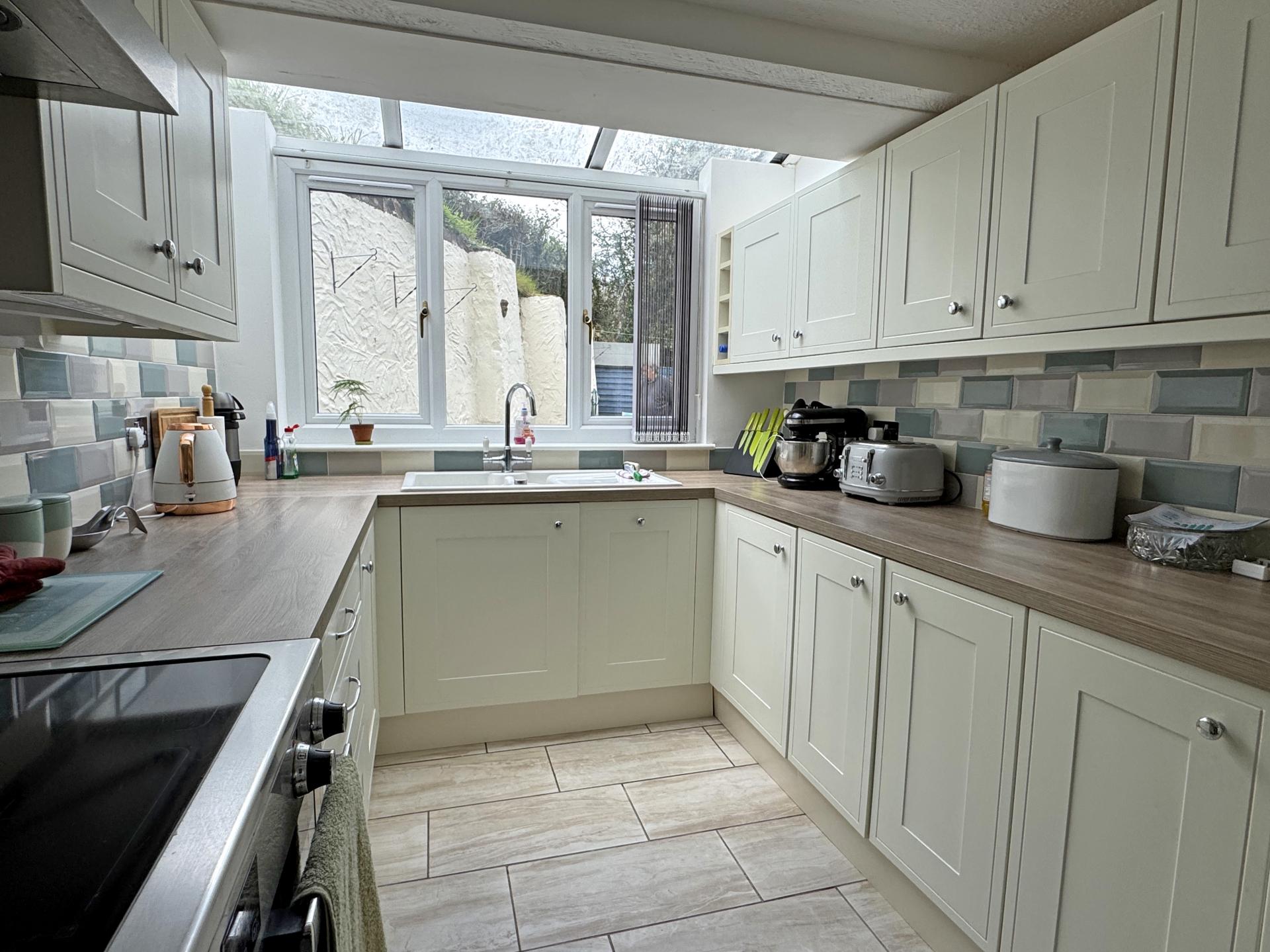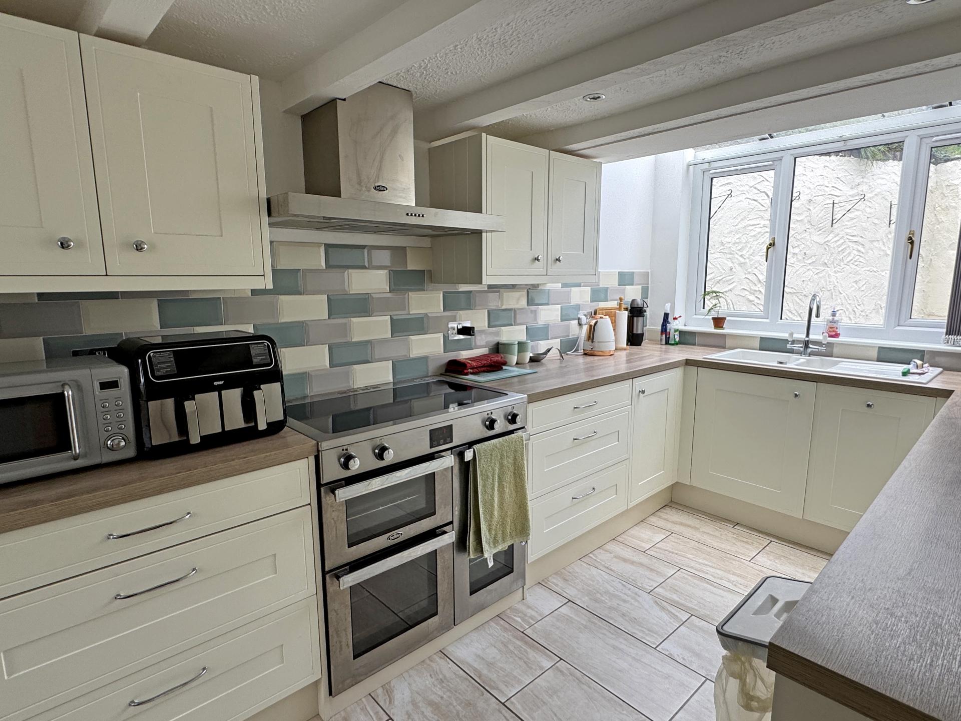 A uPVC double glazed front door opens into the kitchen which is fitted with a range of matching cabinets and worksurfaces, providing plenty of storage. A freestanding Belling double oven has a ceramic hob with cooker hood over and there is an integrated dishwasher along with space for a fridge/freezer. An inner hall provides storage and gives access to both the sitting room and dining room.