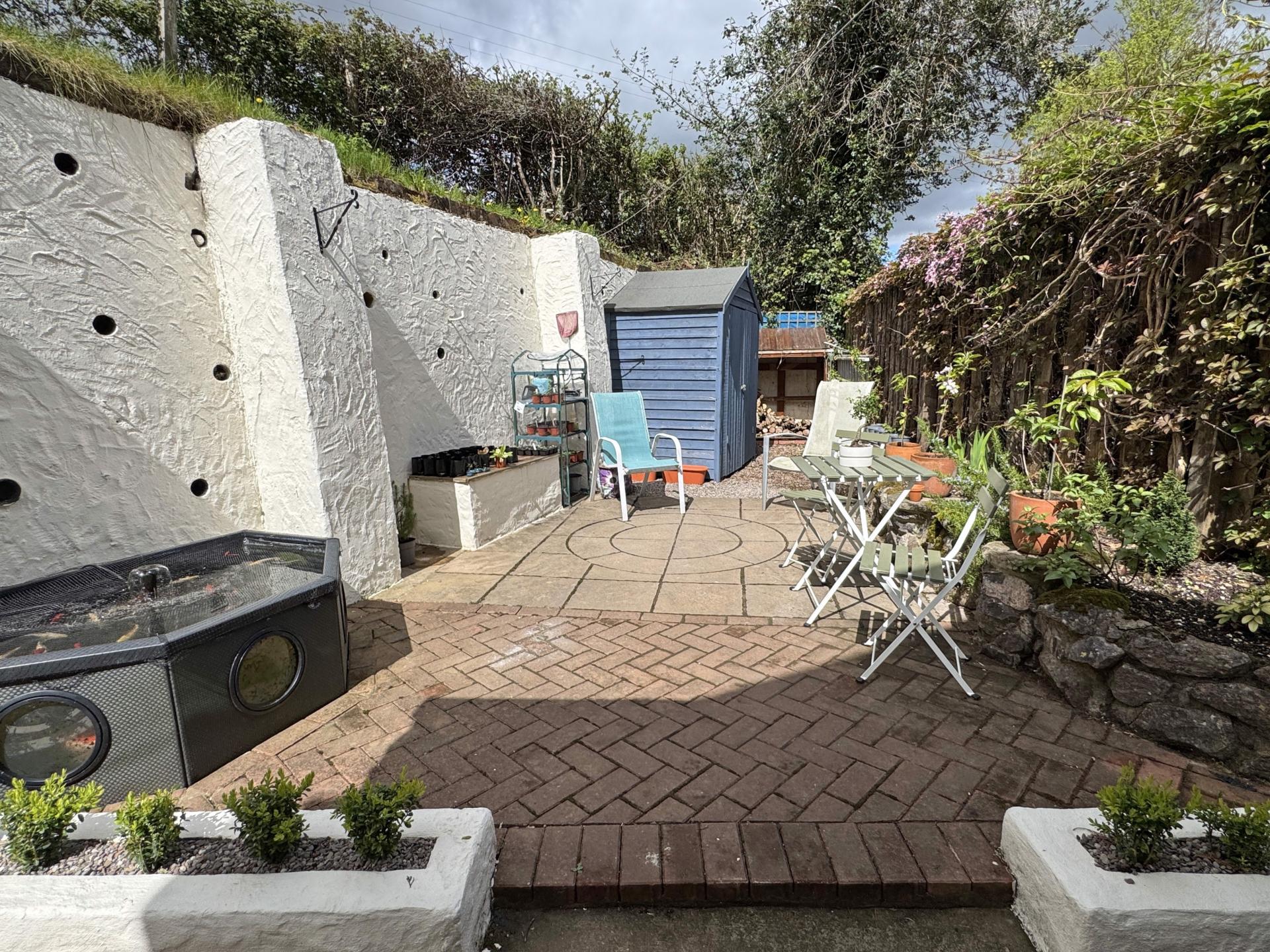 The gardens are well presented having been designed for ease of maintenance. Adjoining the front door is a terraced area with numerous shrubs and this gives access to the side of the house and main area of garden. This offers much privacy and is mainly paved offering space for seating, tubs and troughs with a raised shrub border and timber garden shed.