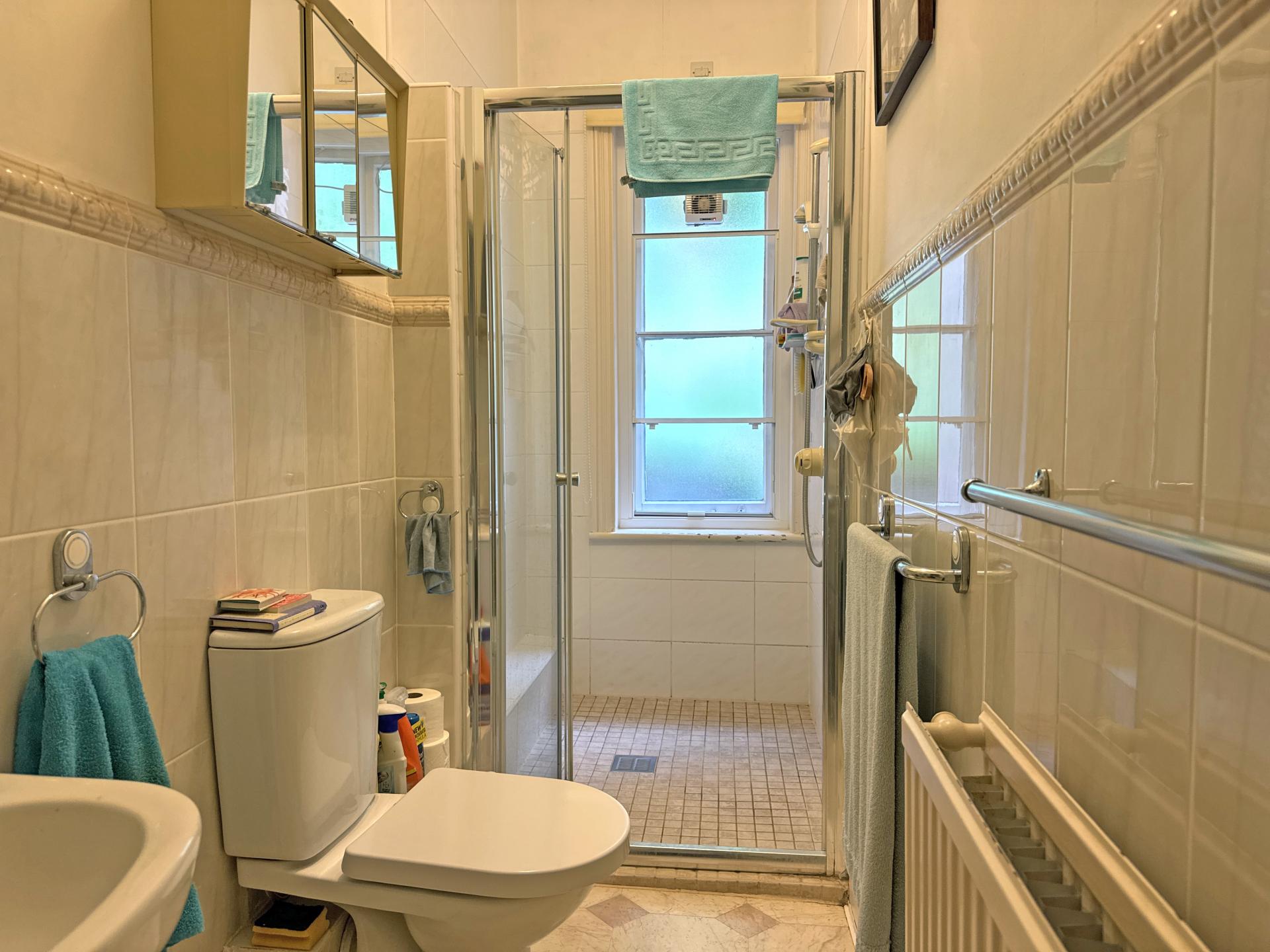 On entering Willoughby House, you are greeted by a most impressive communal entrance hall with a high ceiling, quarry tile floor and stunning fireplace. A staircase to the left rises to the first floor and the front door of the apartment. Once inside, the spacious accommodation which has secondary glazing and gas central heating, is accessed via an entrance hall with excellent storage and space for a study desk. The generous sitting room has a tall bay window looking easterly, taking in a stunning 180° view of The Sid Valley and sea. The room features decorative plaster coving, picture rails and a beautiful, marble fireplace. The kitchen/dining room has a comprehensive range of units, with built in dishwasher, oven, microwave, electric hob, fridge/freezer and dresser. A floor standing gas boiler serves hot water and central heating and there is space for a washing machine and tumble dryer.