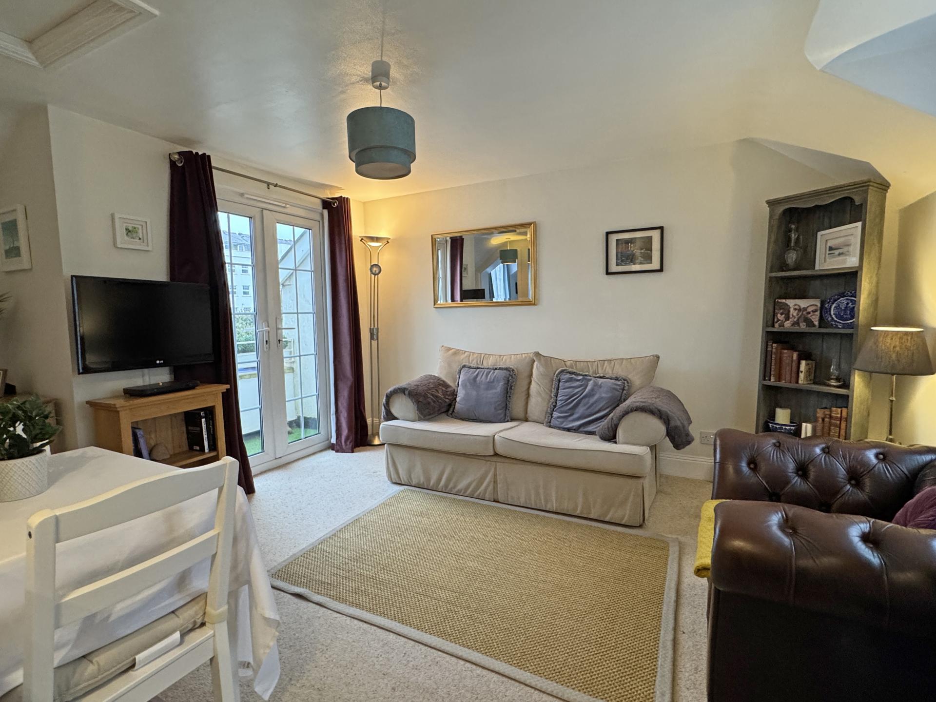 The house offers well presented accommodation arranged over two floors and benefits from having modern electric heating along with double glazed windows which include two sets of French doors to the living space, one having a Juliette balcony and the other opening onto a balcony, which enjoys a pleasant outlook in an easterly direction towards Salcombe Hill.