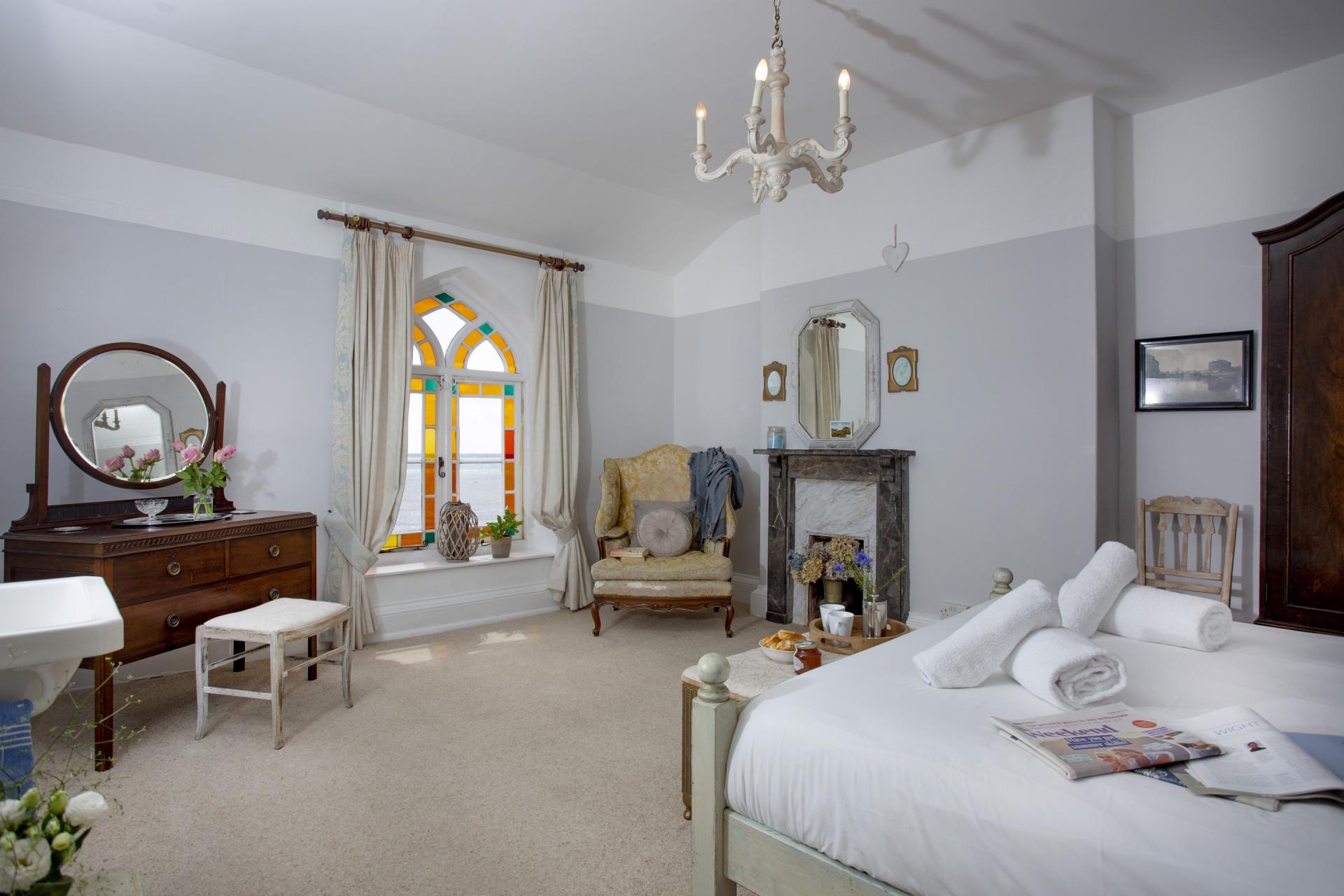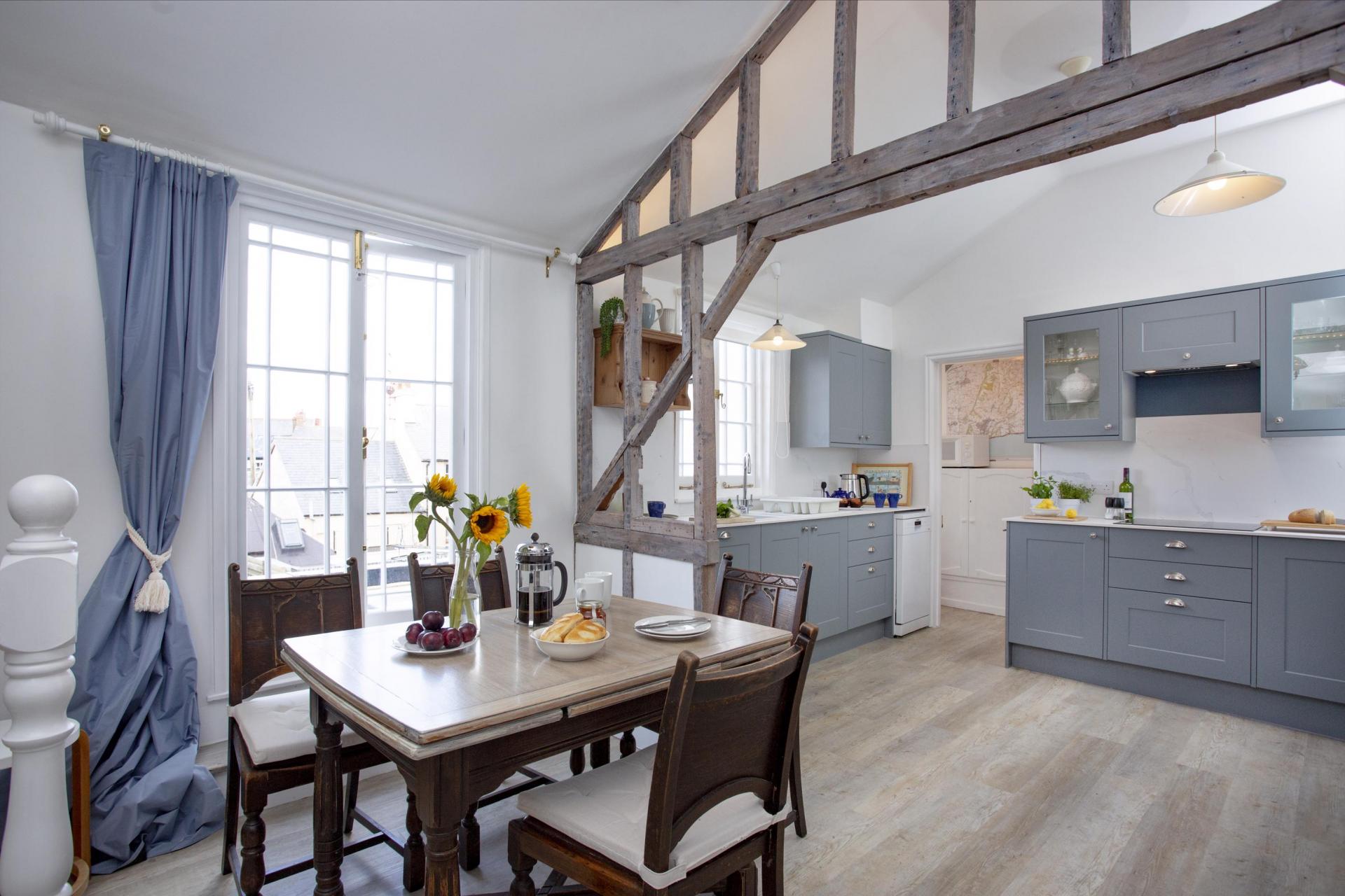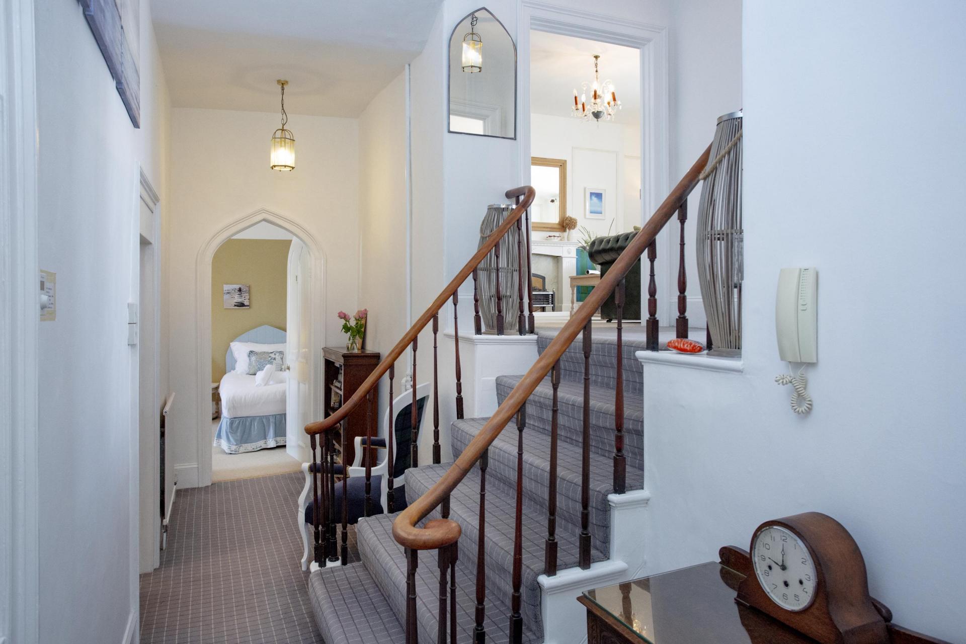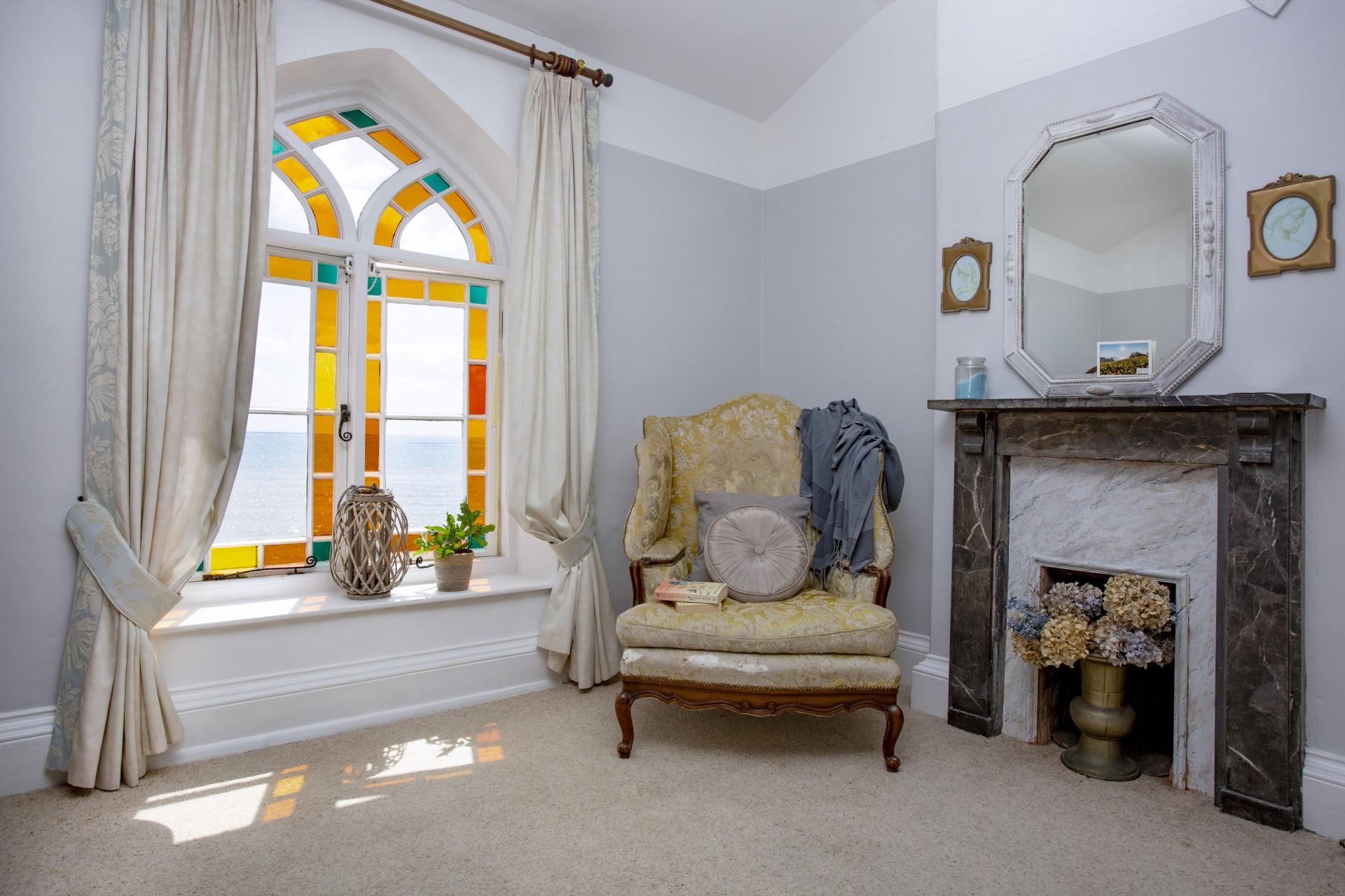 Understood to have been built in the 1700’s and widely believed to be the first house built facing the seafront, Beach House is a striking Grade II* Listed building, the exterior of which was altered in the first half of the 1800’s into the Regency style that we see today. The apartment occupies the entirety of the top floor and features three, pointed arch, stain glass windows, all looking due south out to sea. The interior has been sympathetically modernised over the years, retaining period features, in particular an exposed timber framework in the kitchen