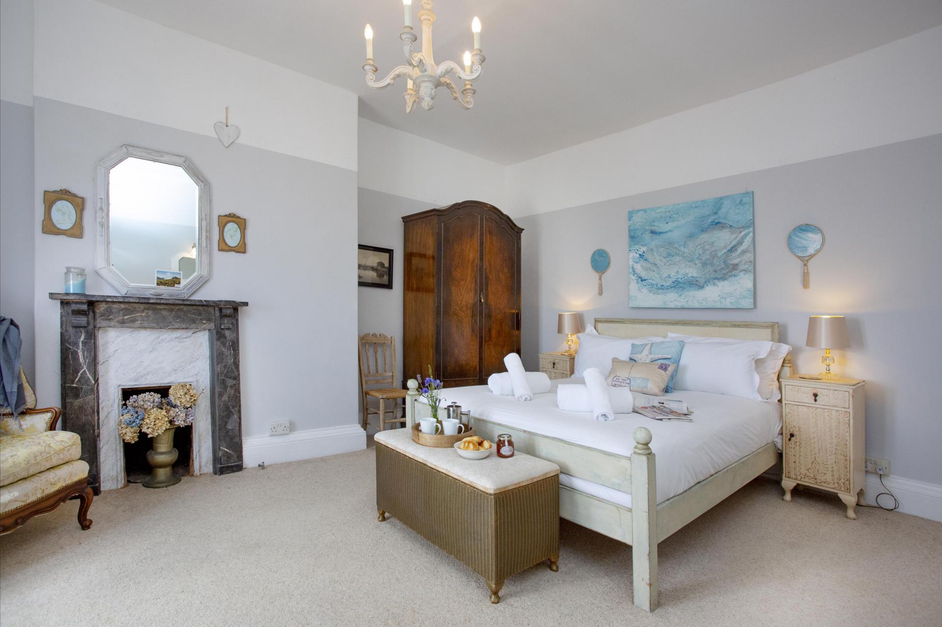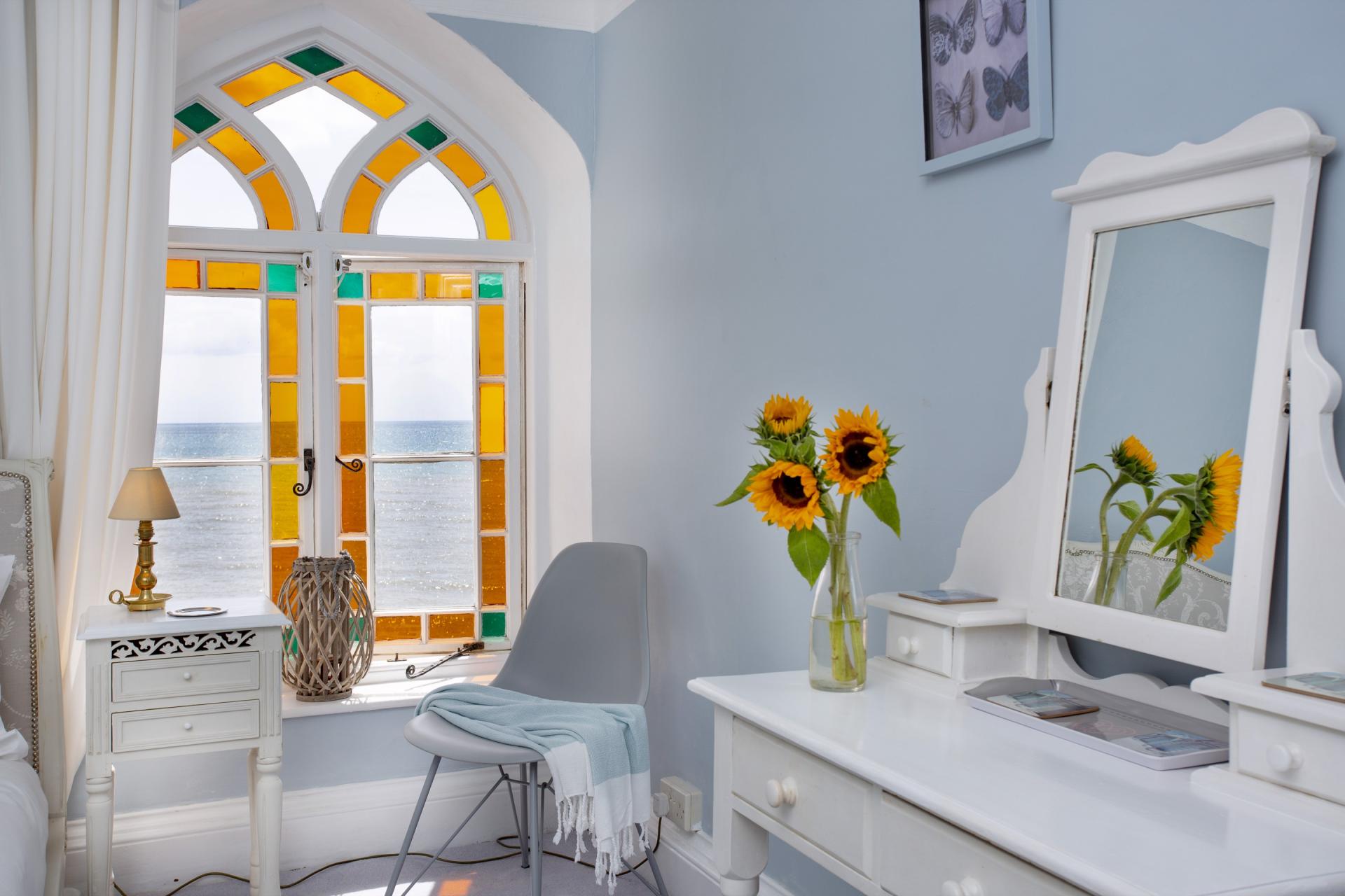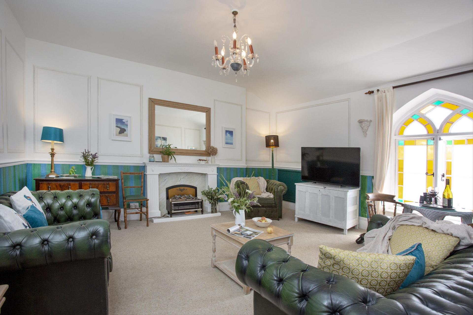 Understood to have been built in the 1700’s and widely believed to be the first house built facing the seafront, Beach House is a striking Grade II* Listed building, the exterior of which was altered in the first half of the 1800’s into the Regency style that we see today. The apartment occupies the entirety of the top floor and features three, pointed arch, stain glass windows, all looking due south out to sea. The interior has been sympathetically modernised over the years, retaining period features, in particular an exposed timber framework in the kitchen