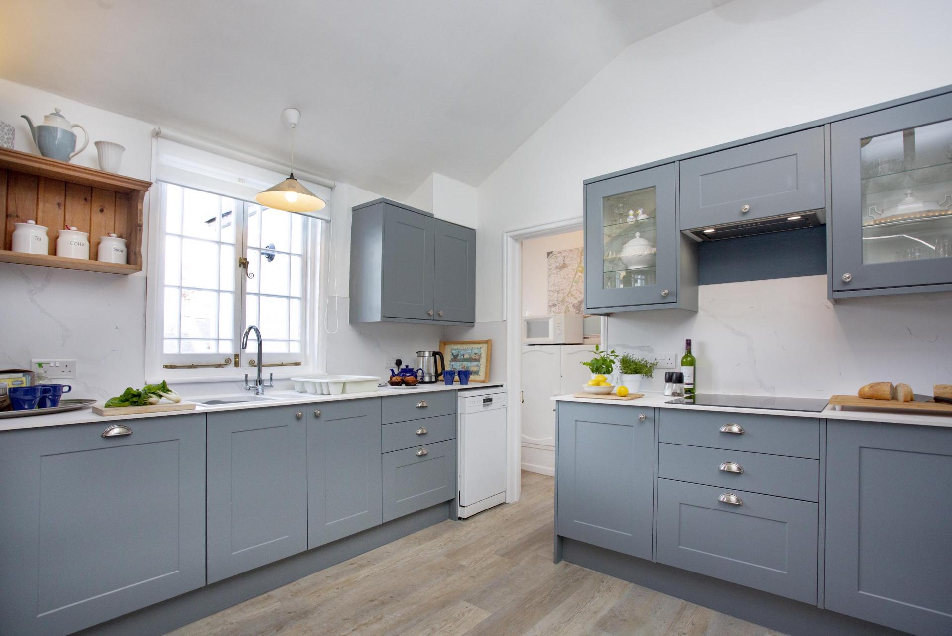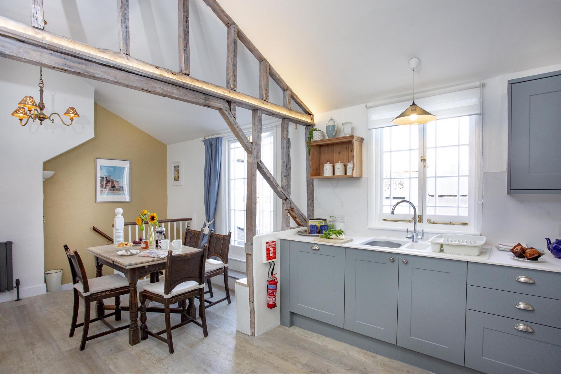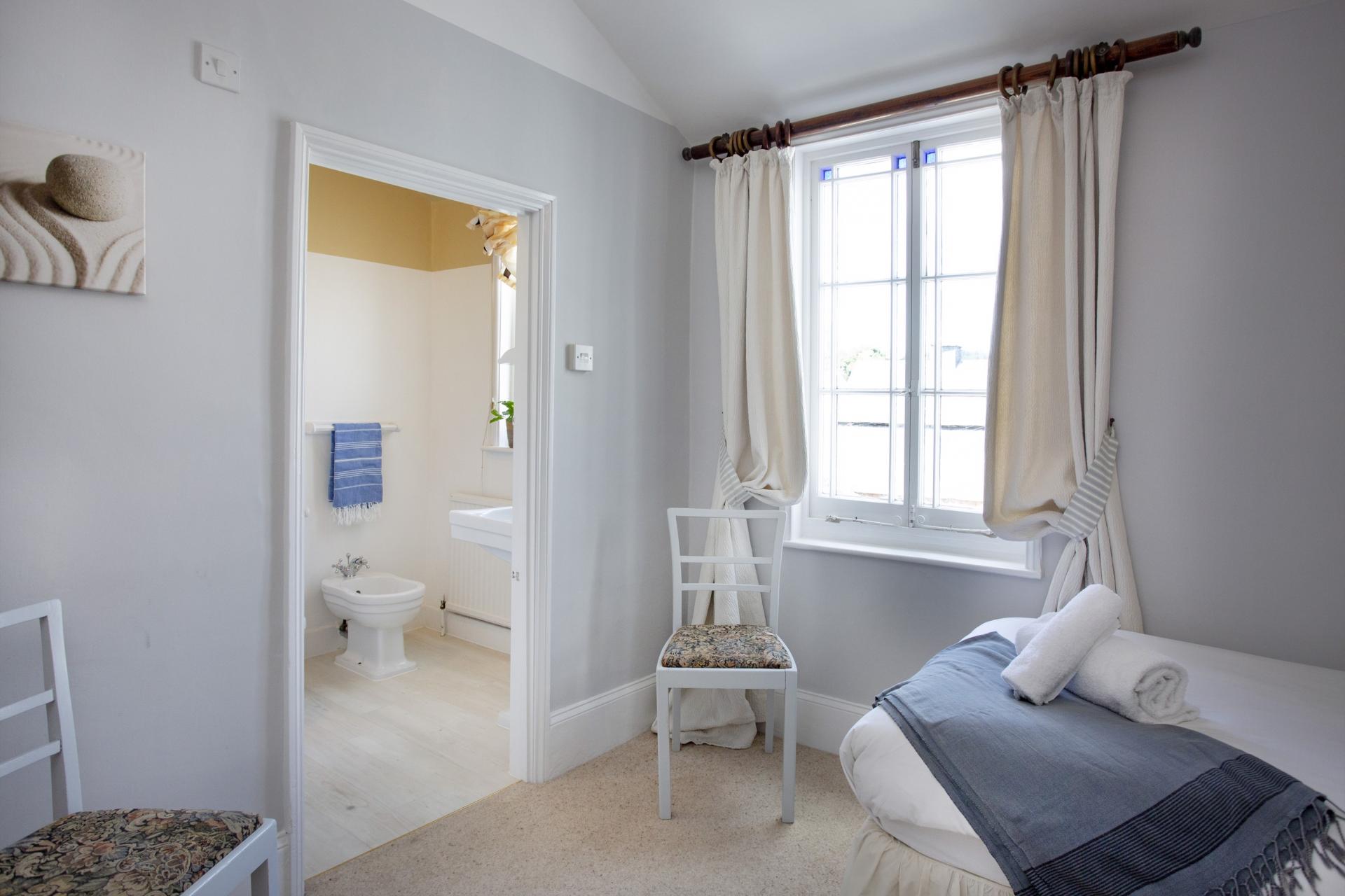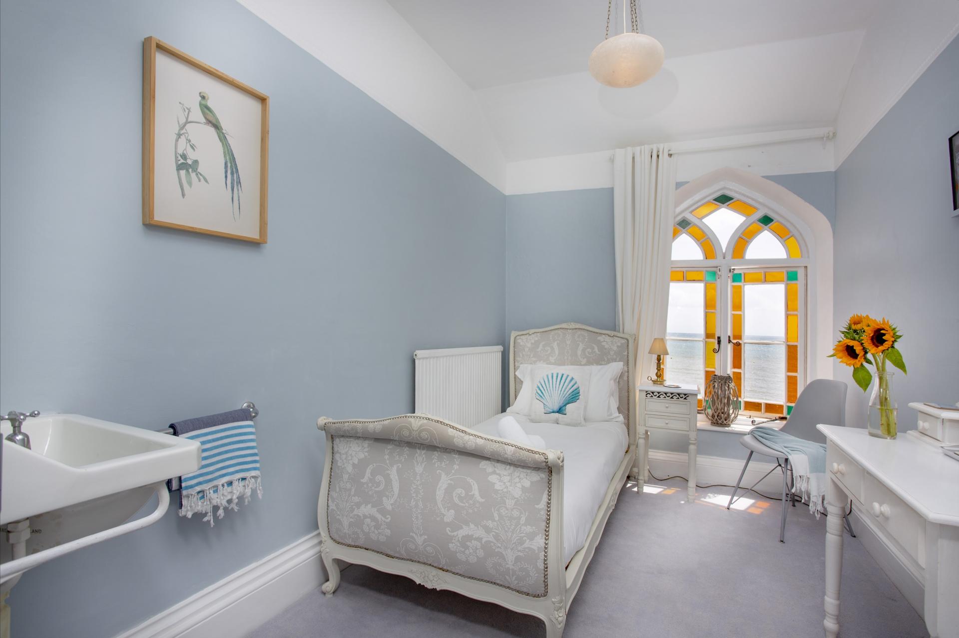 Understood to have been built in the 1700’s and widely believed to be the first house built facing the seafront, Beach House is a striking Grade II* Listed building, the exterior of which was altered in the first half of the 1800’s into the Regency style that we see today. The apartment occupies the entirety of the top floor and features three, pointed arch, stain glass windows, all looking due south out to sea. The interior has been sympathetically modernised over the years, retaining period features, in particular an exposed timber framework in the kitchen