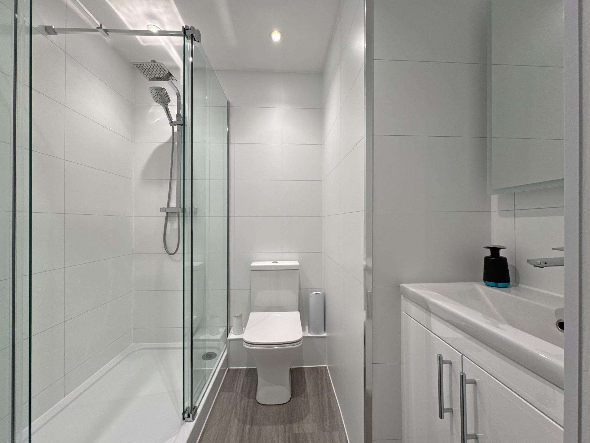 The double bedroom has floor to ceiling fitted wardrobes providing ample storage. Finally, a well-appointed shower room features a mains shower with double cubicle, ladder style radiator and some built-in storage.