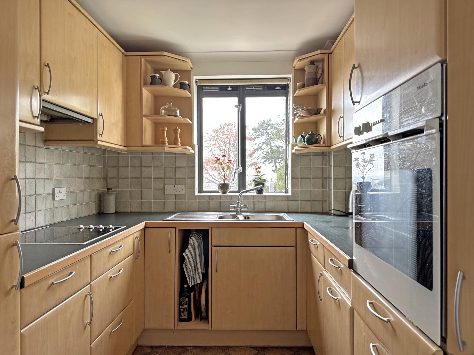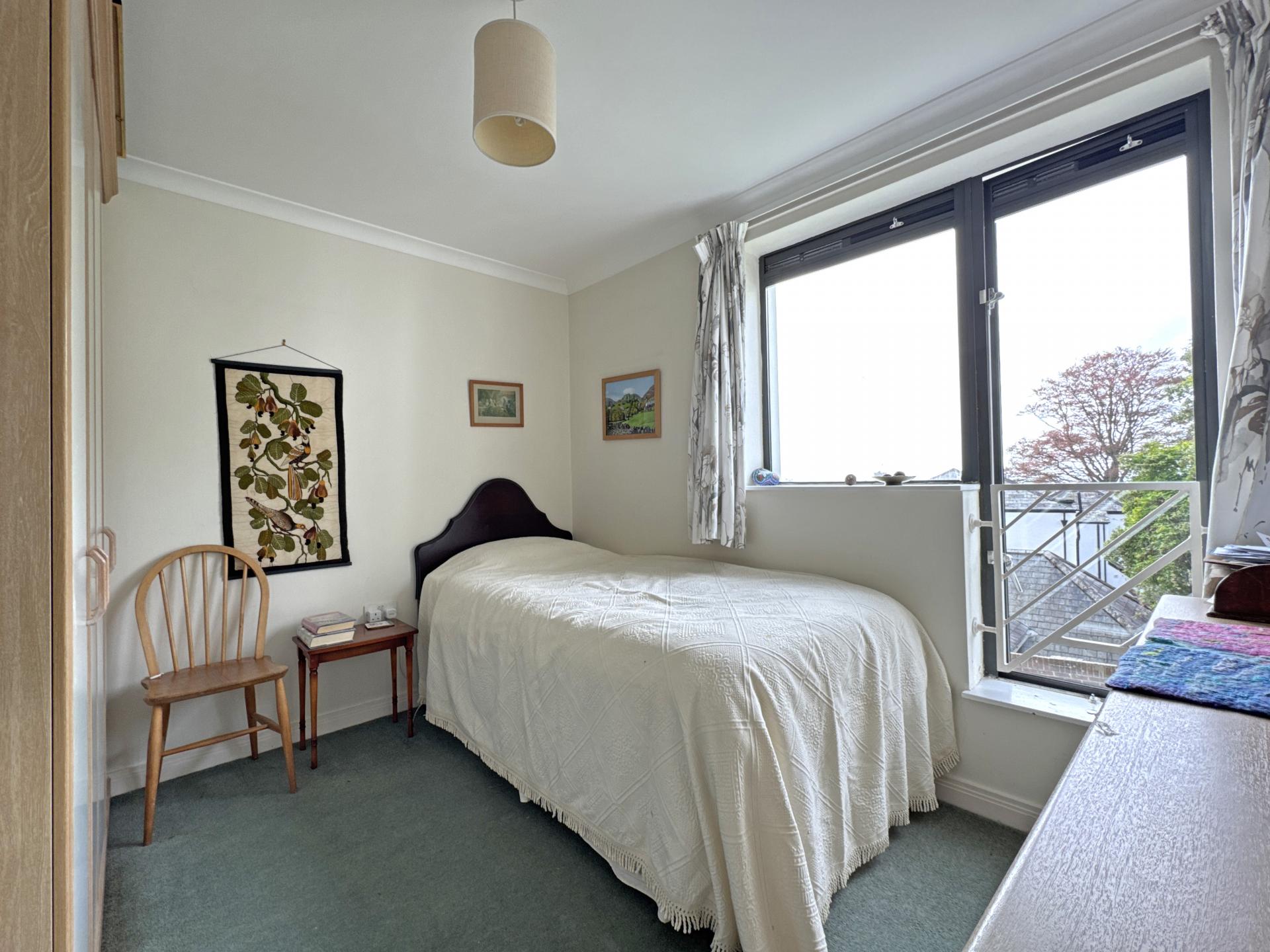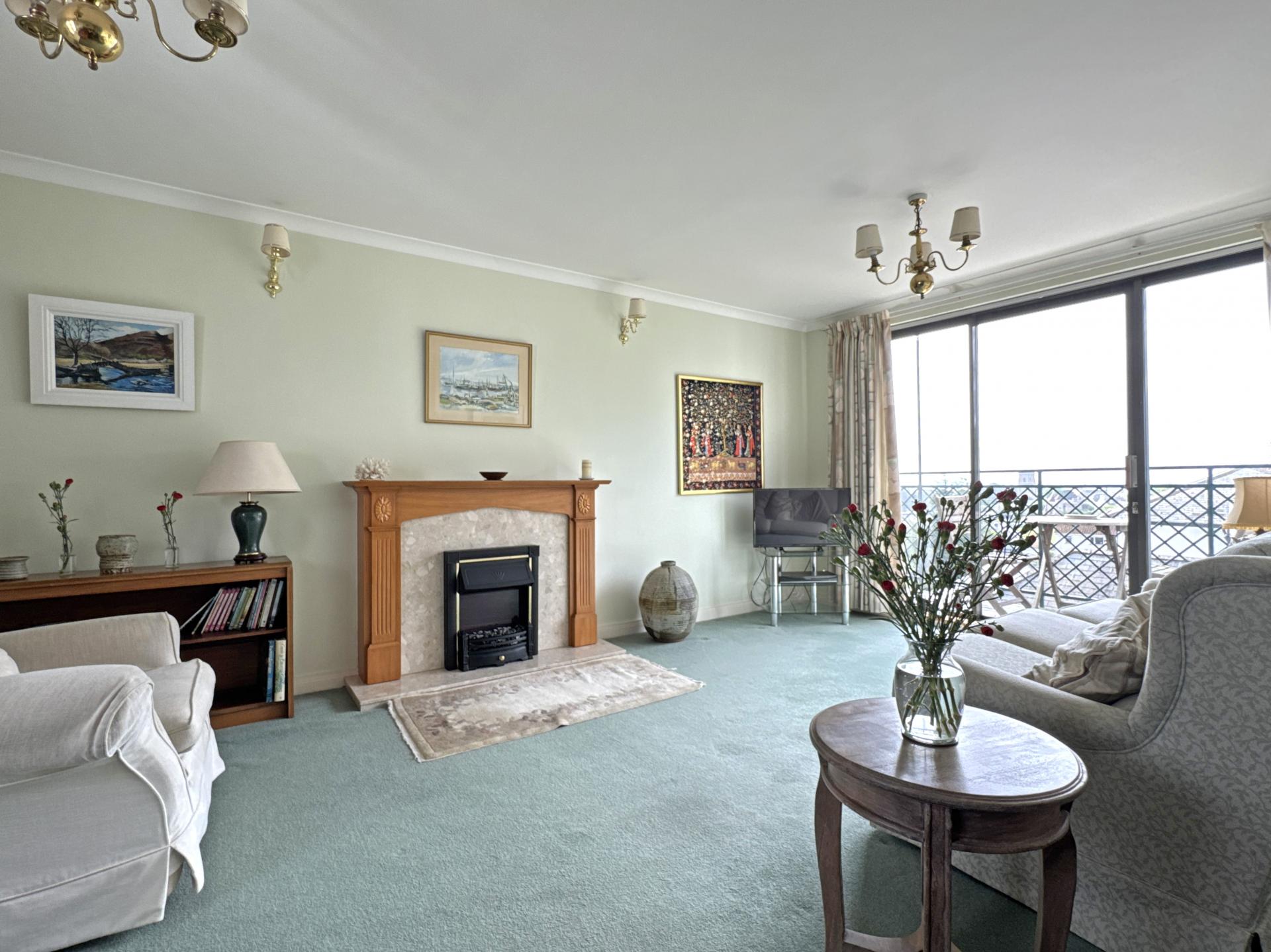 Forming part of a popular development built in the 1980’s, this balcony flat is located on the first floor with lift access from the main entrance hallway. The property is offered for sale with no on-going chain and has double glazing and electric heating. Once inside the entrance hall has storage cupboards and an airing cupboard housing the hot water cylinder. A spacious dual aspect sitting dining room has a stunning south facing view over the town centre and down to the sea. The view also extends easterly along Salcombe Hill. A separate kitchen is fitted with a range of units to include a built-in oven, electric hob and fridge/freezer.