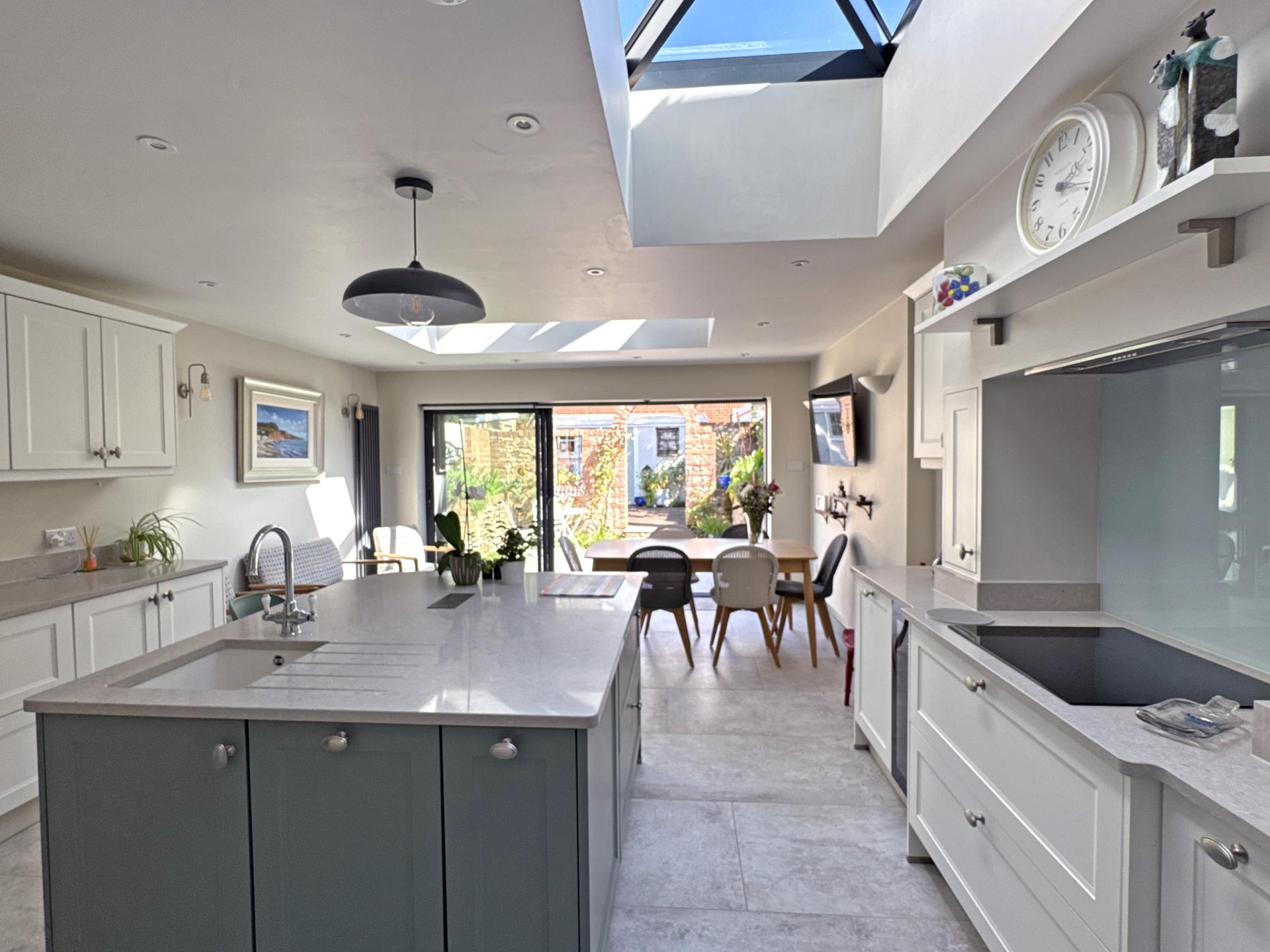 Presented in stunning order throughout, this three storey Edwardian town house was constructed in the early 1900’s to a design by the acclaimed local architect R W Samson. The house sympathetically combines period features with modern day comforts such as a contemporary kitchen and bathrooms with underfloor heating. A modern two storey extension to the rear has allowed the accommodation to be imaginatively reorganised, creating a spacious utility with generous storage and cloakroom/WC and a particularly impressive kitchen/dining room and living room. This stunning room featuring three large glazed sliding doors to the rear and two lantern windows is beautifully appointed, using quality materials and with built-in appliances to include ovens, an induction hob, large fridge and separate freezer, dishwasher and wine chiller. A traditional sitting room has been retained which enjoys a front facing bay window overlooking the River Sid.