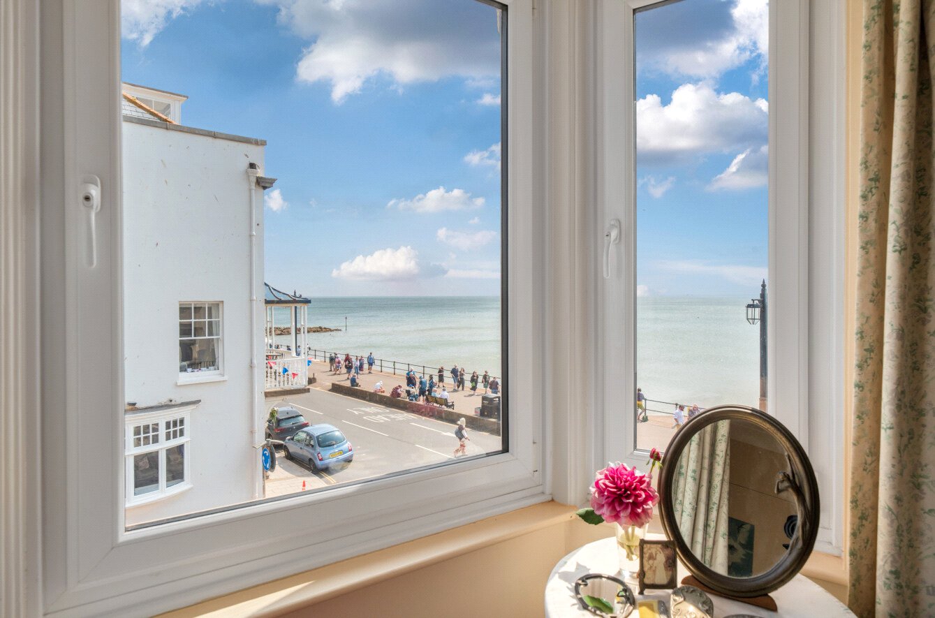Occupying a prime seafront position in Sidmouth, this home boasts uninterrupted views across the Esplanade, Lyme Bay, and the dramatic Jurassic coastline, part of a UNESCO World Heritage Site. The ever-changing seascape is visible from multiple rooms and levels, providing a spectacular coastal backdrop.