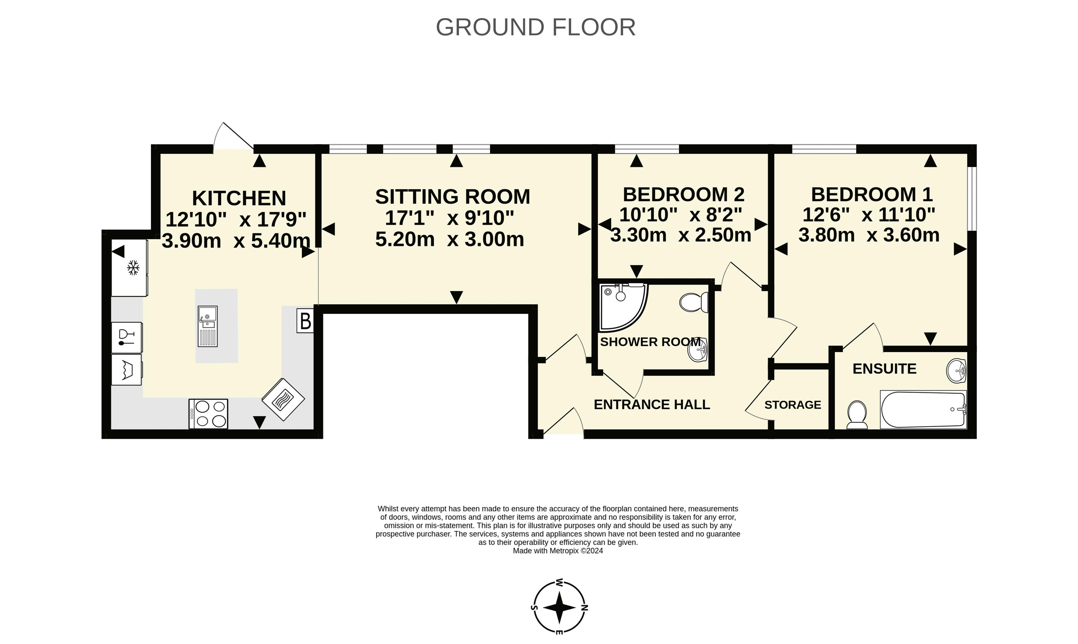 A door from the kitchen opens onto a patio which adjoins a small, lawned garden that we understand forms part of the communal grounds. The patio and garden both enjoy the west facing aspect overlooking the grounds, but are used exclusively by the apartment.