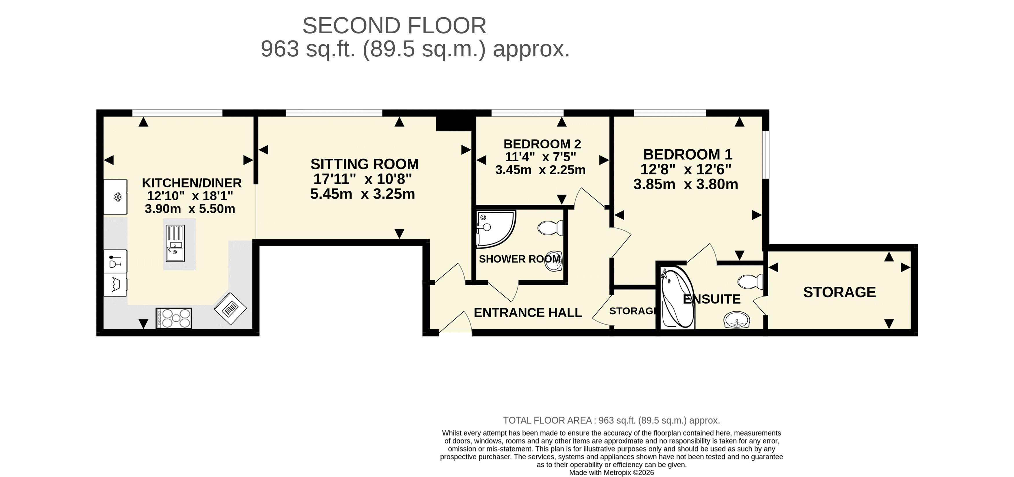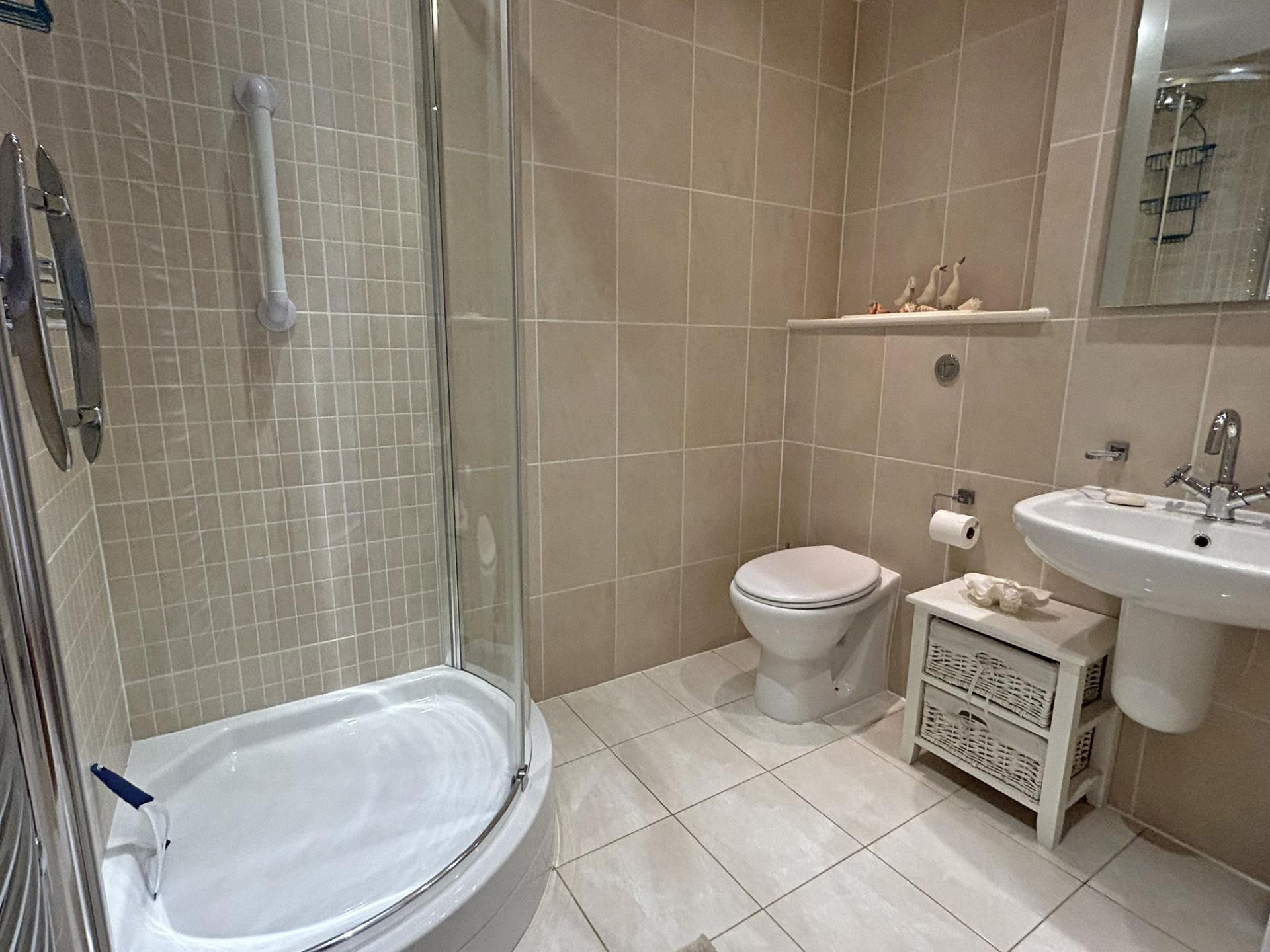 There are two bedrooms, both enjoying lovely views, the main bedroom having an en-suite bathroom with a large storage area off. The en-suite is fully tiled and comprises a corner bath, WC, wash basin and has a heated towel rail. The adjoining roof space provides a very useful storage area. In addition, there is a separate shower room off the reception hall, again fitted with a modern white suite and having a corner shower, WC and wash basin.