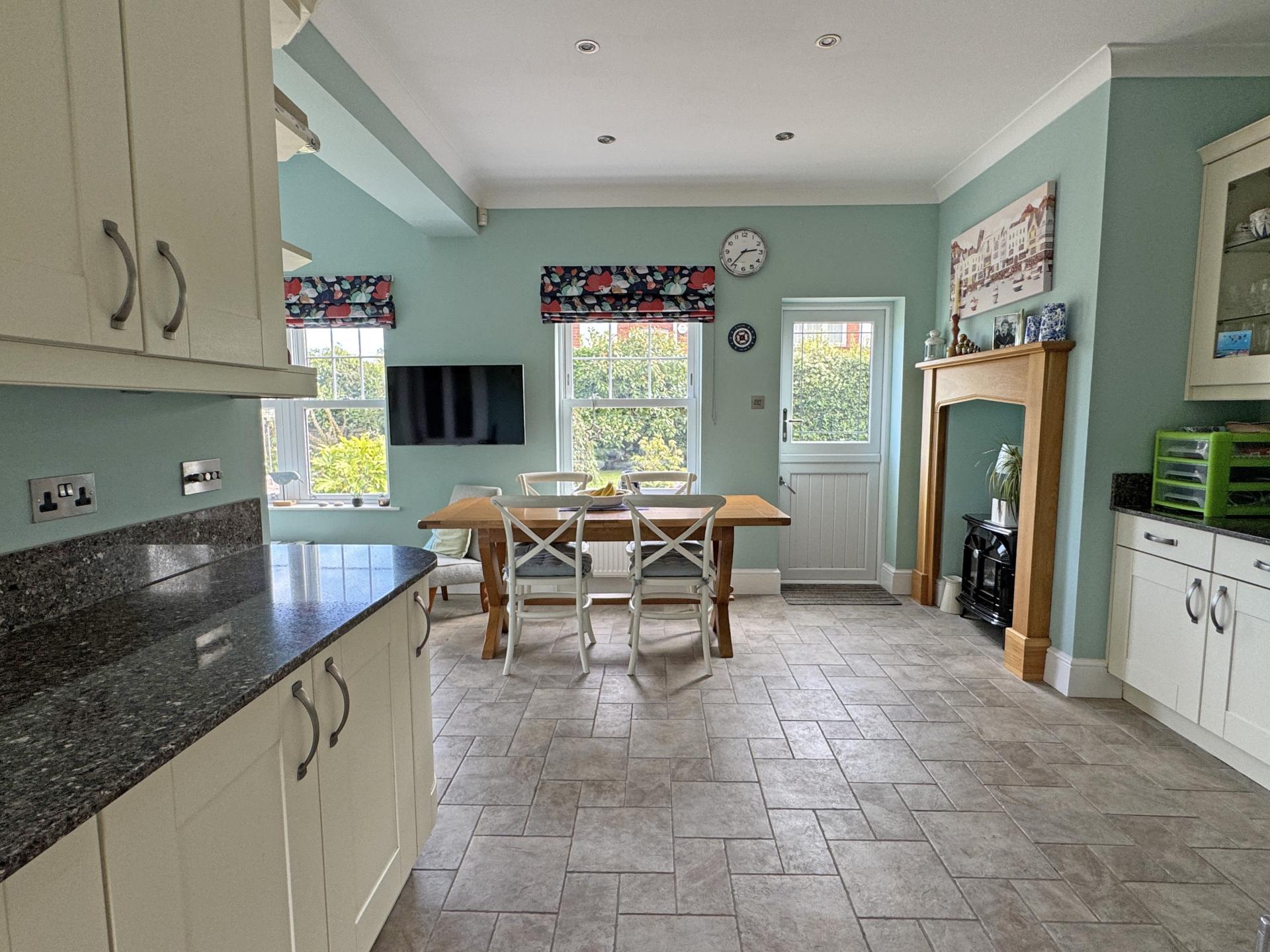 The house offers well presented accommodation arranged over three floors, with most rooms being very well proportioned, typically of its era. On entering the house, the reception hall has a feature leaded light window, along with a substantial staircase rising to the upper floors and there is also a useful cloaks/WC off, along with a walk-in larder. The living room enjoys a triple aspect with large bay window, feature fireplace and double doors open into a uPVC double glazed conservatory which has a vaulted ceiling and French doors leading into the garden. A separate sitting room has a fireplace and wide bay window, enjoying a southerly aspect and the kitchen/dining/family room enjoys a triple aspect, predominantly south and also gives access into the garden. The kitchen area offers an excellent range of cupboards and granite worksurfaces, providing ample storage and appliances comprise a built-in split level oven with warming drawer, an induction hob with cooker hood over along with an integrated fridge/freezer and dishwasher. The room enjoys a lovely outlook over the garden and has plenty of room for a good size table and chairs. An adjoining rear hall is ideal for coats and shoes and there is a further back door along with access into an adjoining utility room which offers further storage, with a sink unit and space and plumbing for a washing machine and dryer over.