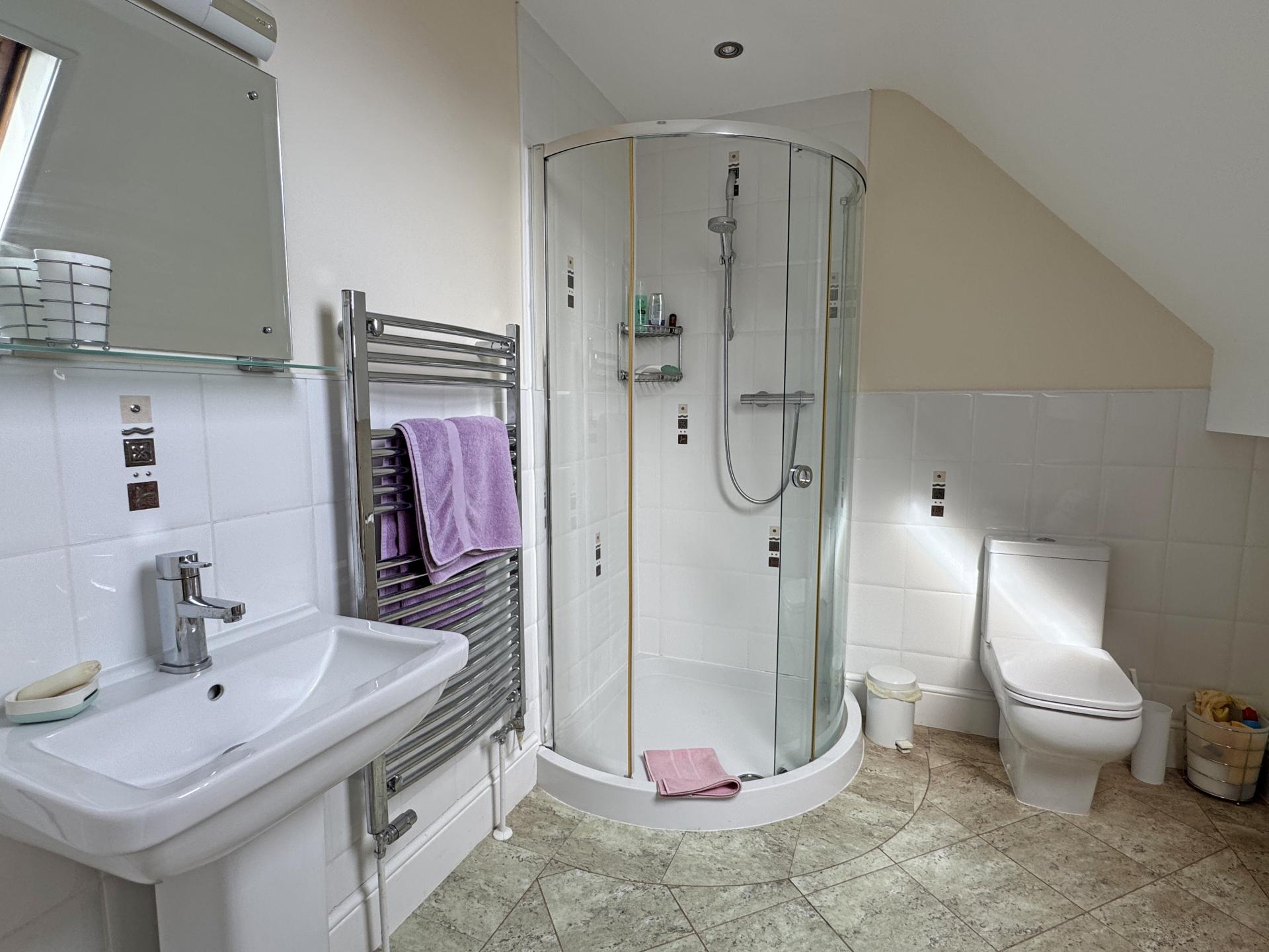 To the first floor there are three bedrooms, one currently being used as a dressing room and connects to the main bedroom via double doors. The main bedroom enjoys a westerly aspect, has a spacious en-suite shower room and there is a further shower room to this floor, which along with the en suite is fitted with an attractive white suite. From the landing, stairs lead to the second floor where there are two further bedrooms, one enjoying a lovely view across the valley towards Salcombe Hill and the other towards Muttersmoor. A separate bathroom has a modern white suite comprising a bath, separate shower cubicle, WC and wash basin.