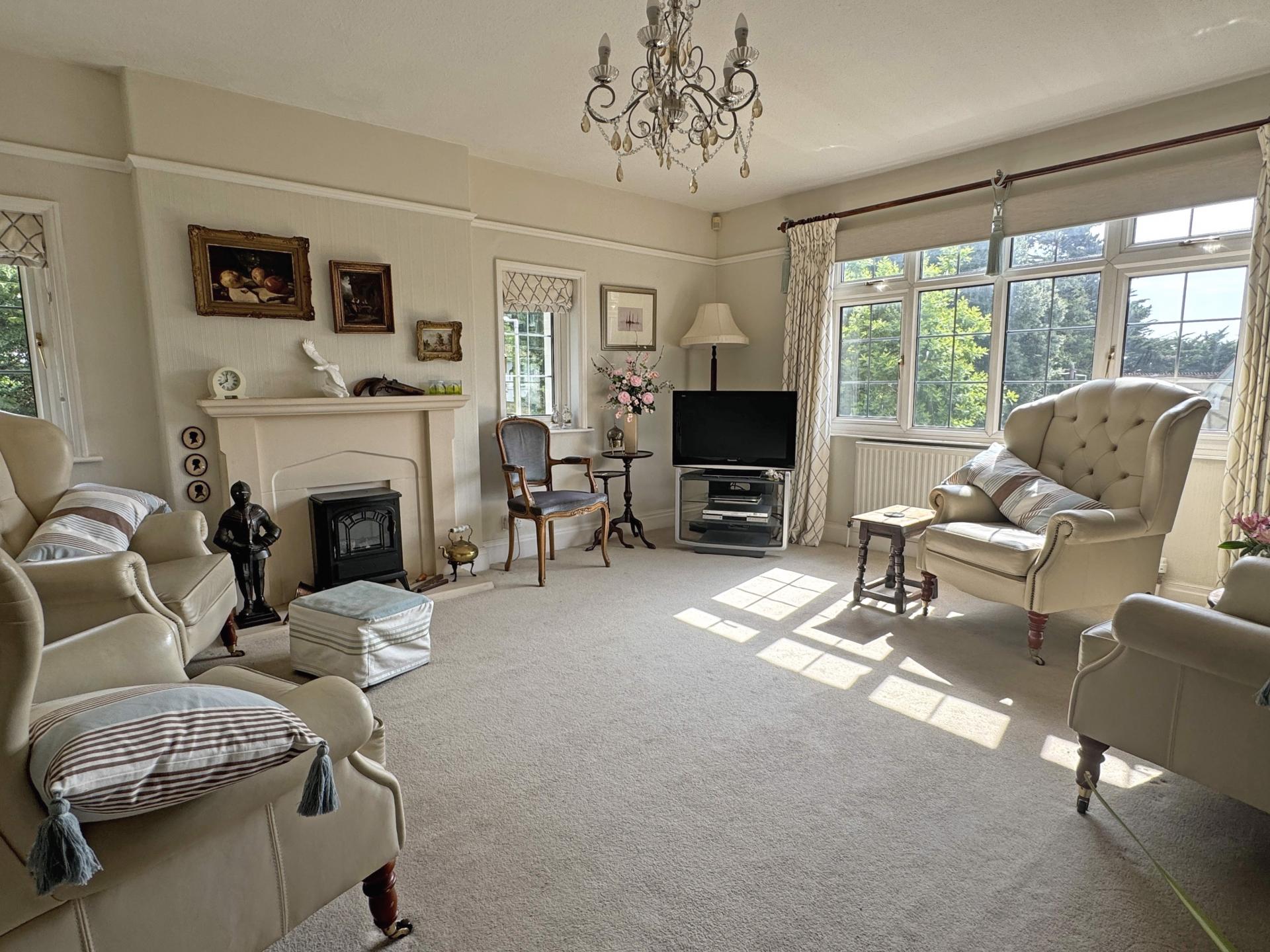 At the top of the High Street turn left into All Saints Road and continue to the mini roundabout opposite The Woodlands Hotel. Turn right, proceeding through the pinch point and Knowle Drive will be seen immediately on the left. Merrion is the first property on the right.