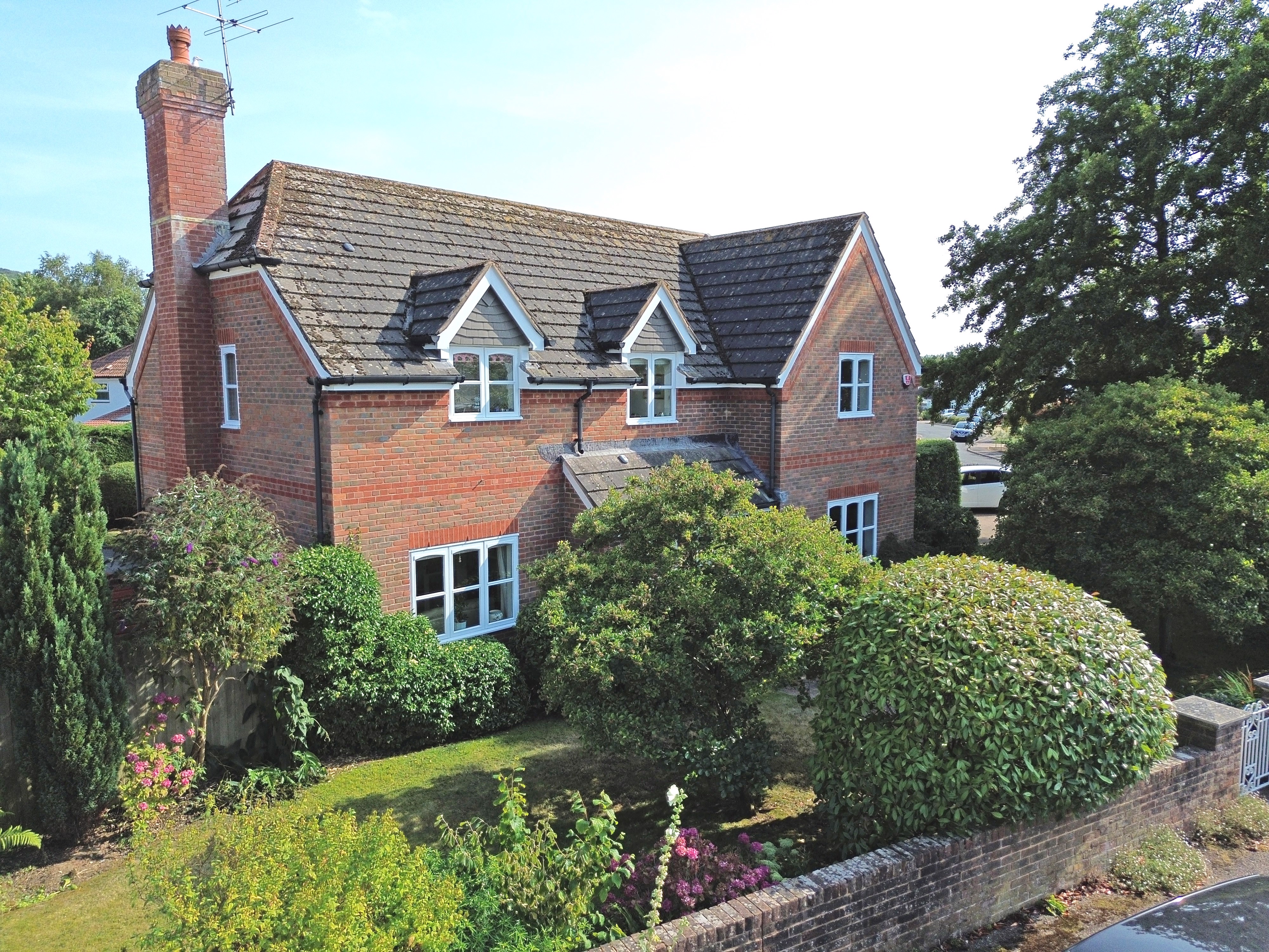 The property is approached via a shared driveway from Hillside Road. The gardens provide lots of interest throughout the year and there is excellent storage via a brick-built garden store, potting shed and summerhouse. The integral garage has an electric ‘up and over’ door along with light, power and a workbench.