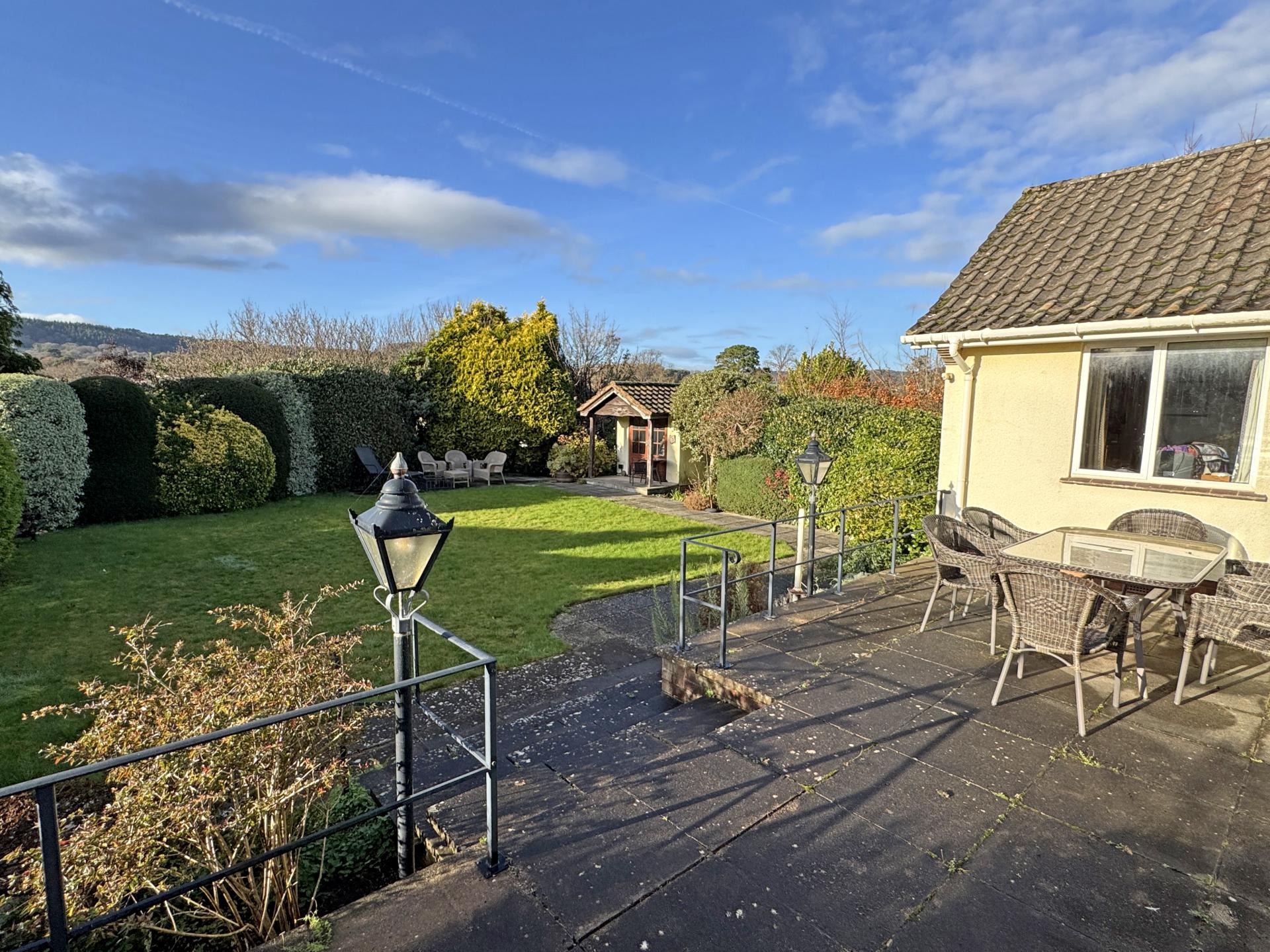 The property extends to approximately a third of an acre with the majority of garden enjoying a lovely south westerly aspect and being well stocked with a wealth of shrubs, most being evergreen and therefore providing lots of privacy throughout the year. A raised west facing terrace adjoins the bungalow and takes full advantage of the aspect and views towards Bulverton Hill and a good size integral garage and driveway provides ample parking for several cars.