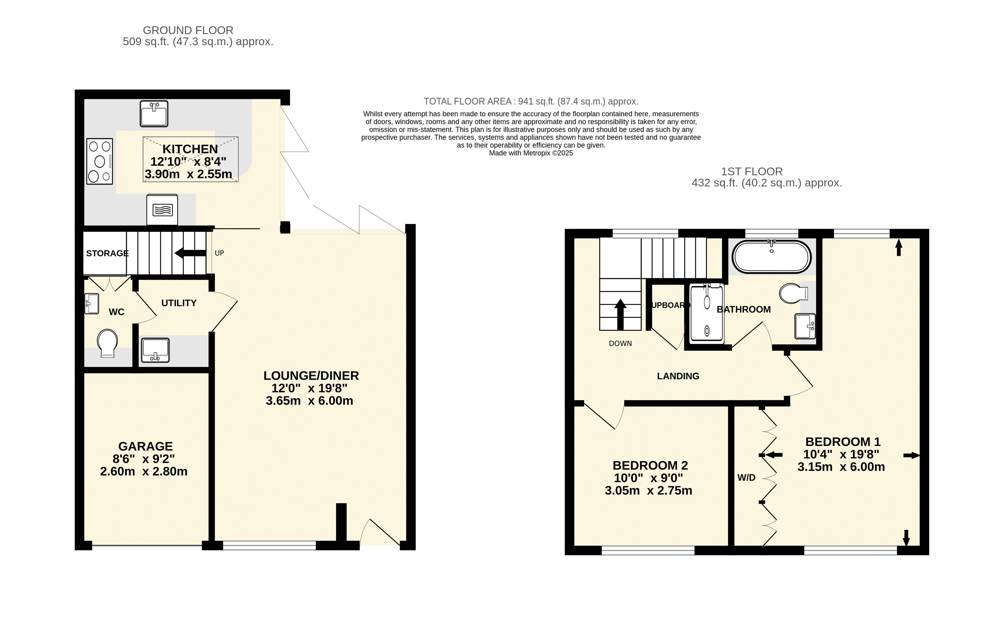 The ground floor also offers a useful utility room and WC, the utility having a sink unit and space and plumbing for a washing machine and tumble dryer and the WC having a wash basin along with a large storage cupboard.
