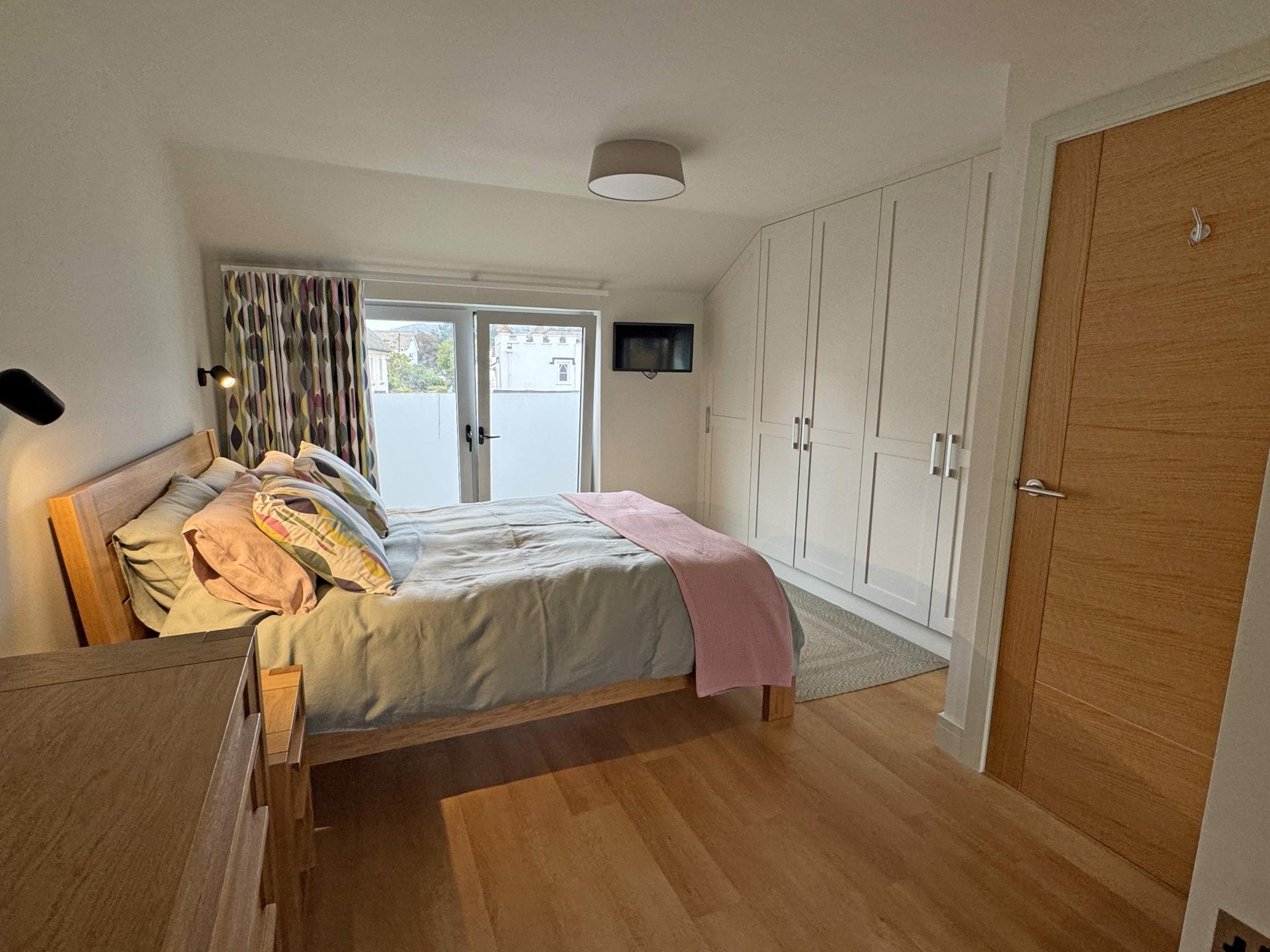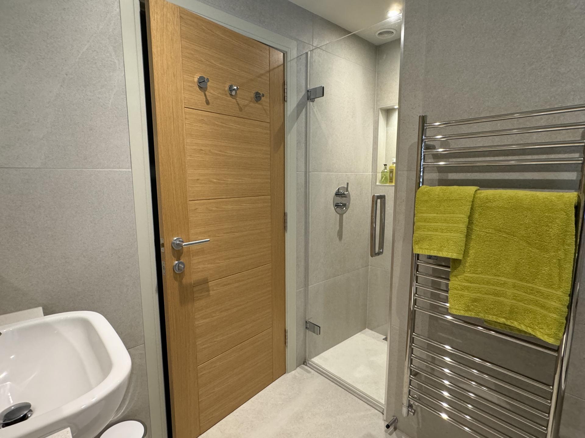 There are two bedrooms, the main bedroom enjoying a dual aspect with Juliette balcony and fitted wardrobes to one wall. The bathroom is fitted and finished to a high standard to include a bath, separate shower cubicle, wash basin and WC, with attractive tiled walls and floor, along with vanity unit and mirror with lighting.
