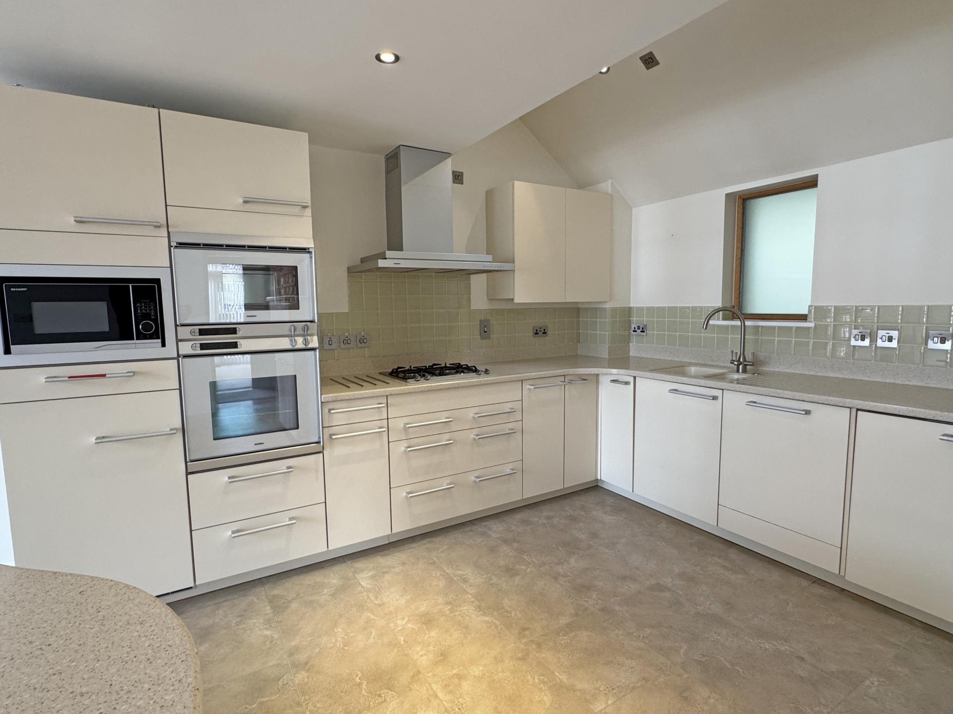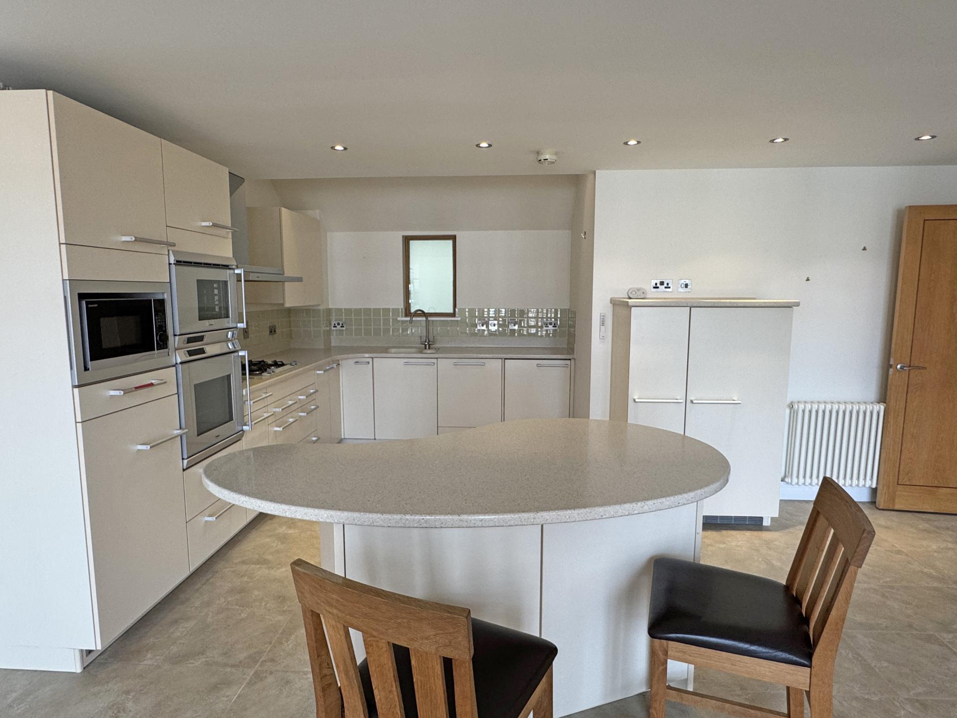 The kitchen area is fitted with high quality Gaggenau units along with Corian worksurfaces and integrated appliances which comprise a split-level double oven, microwave, gas hob, cooker hood, dishwasher, fridge, freezer and washing machine. The kitchen also features a central island unit which offers further storage and workspace.