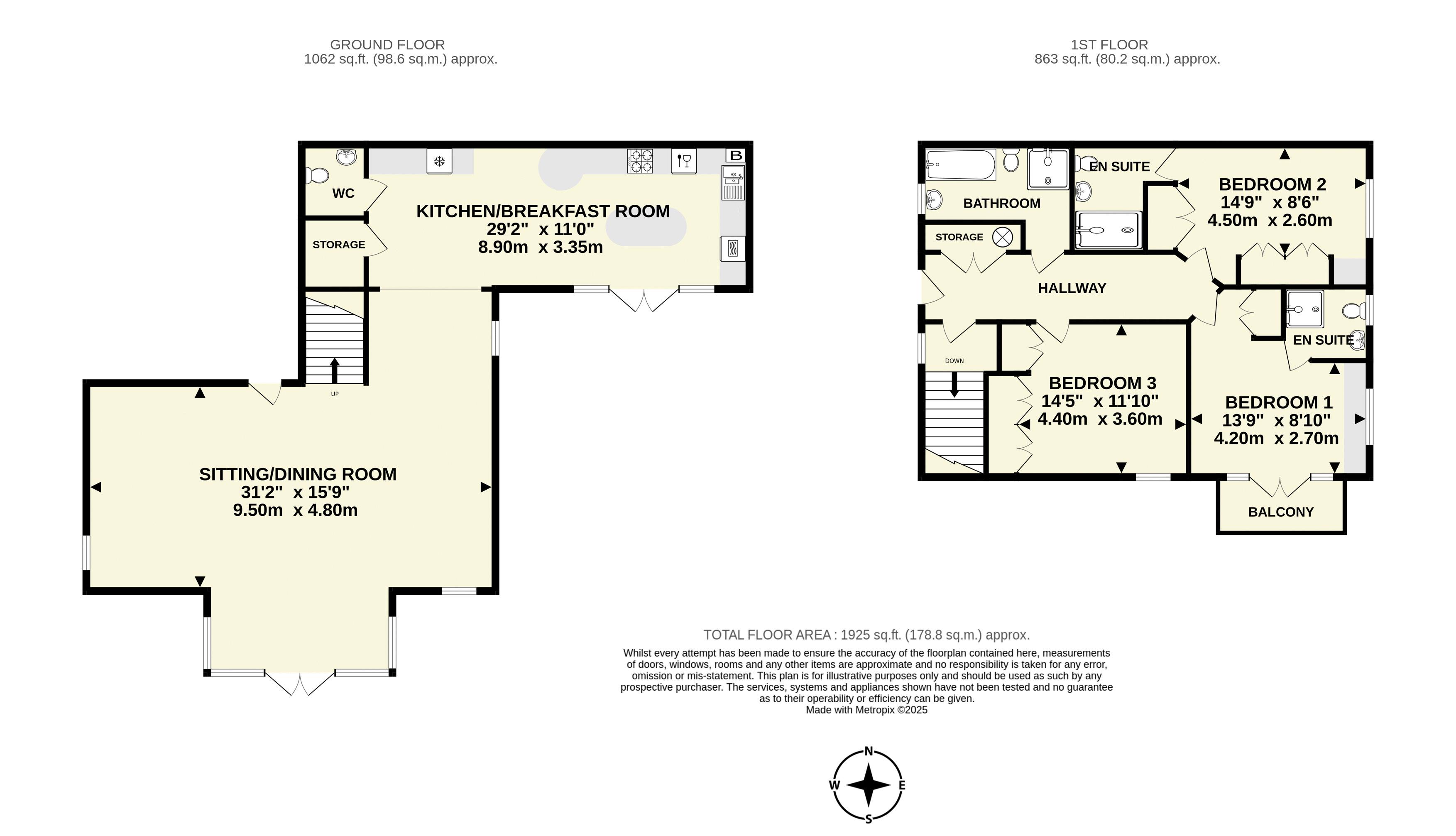 Glazed doors open onto a second private patio, again with fabulous views. There is a useful storage cupboard beneath the stairs and a cloakroom/WC.