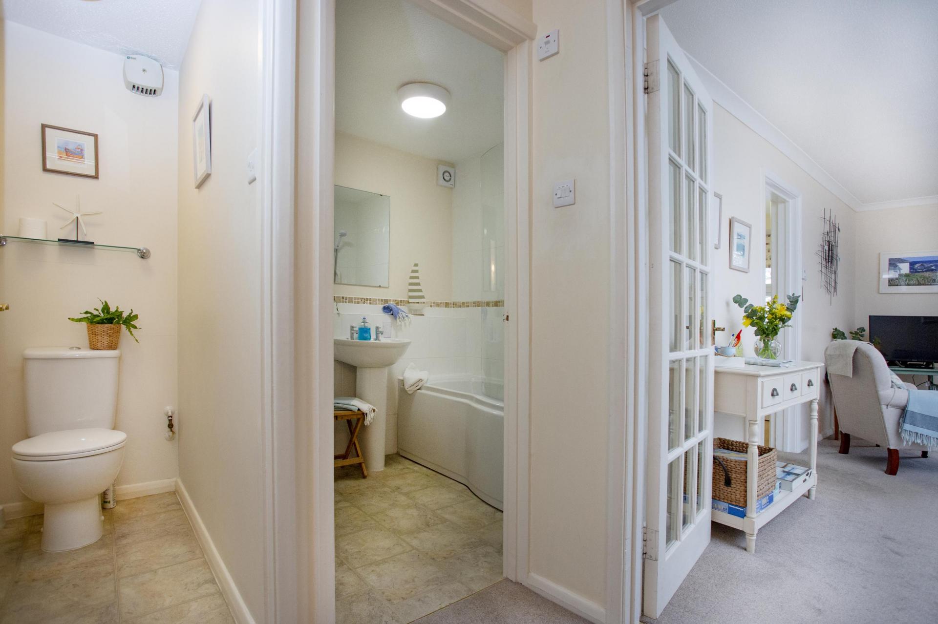 The two bedrooms are to the rear of the flat, both enjoying a southerly aspect. The bathroom is fitted with a white suite comprising a shaped panelled bath with shower over along with a pedestal wash basin, WC and chrome heated towel rail. In addition to this is a separate WC.
