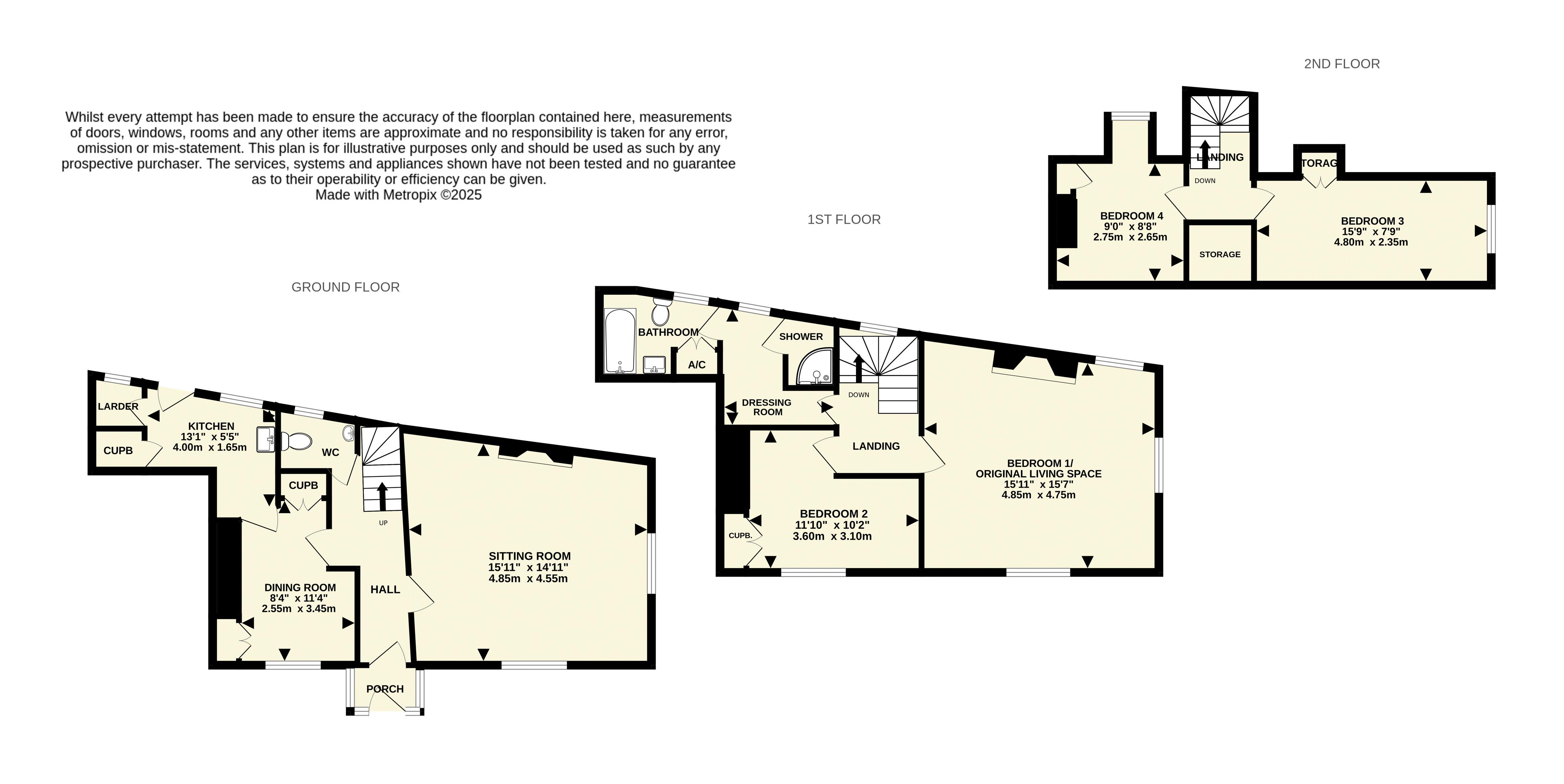To the second floor there are the original servant’s rooms, having slightly low ceilings (1.8m) which are currently being used as two bedrooms, one enjoying an east aspect along the esplanade. Both bedrooms have storage cupboards and off the landing is a further large storage cupboard.