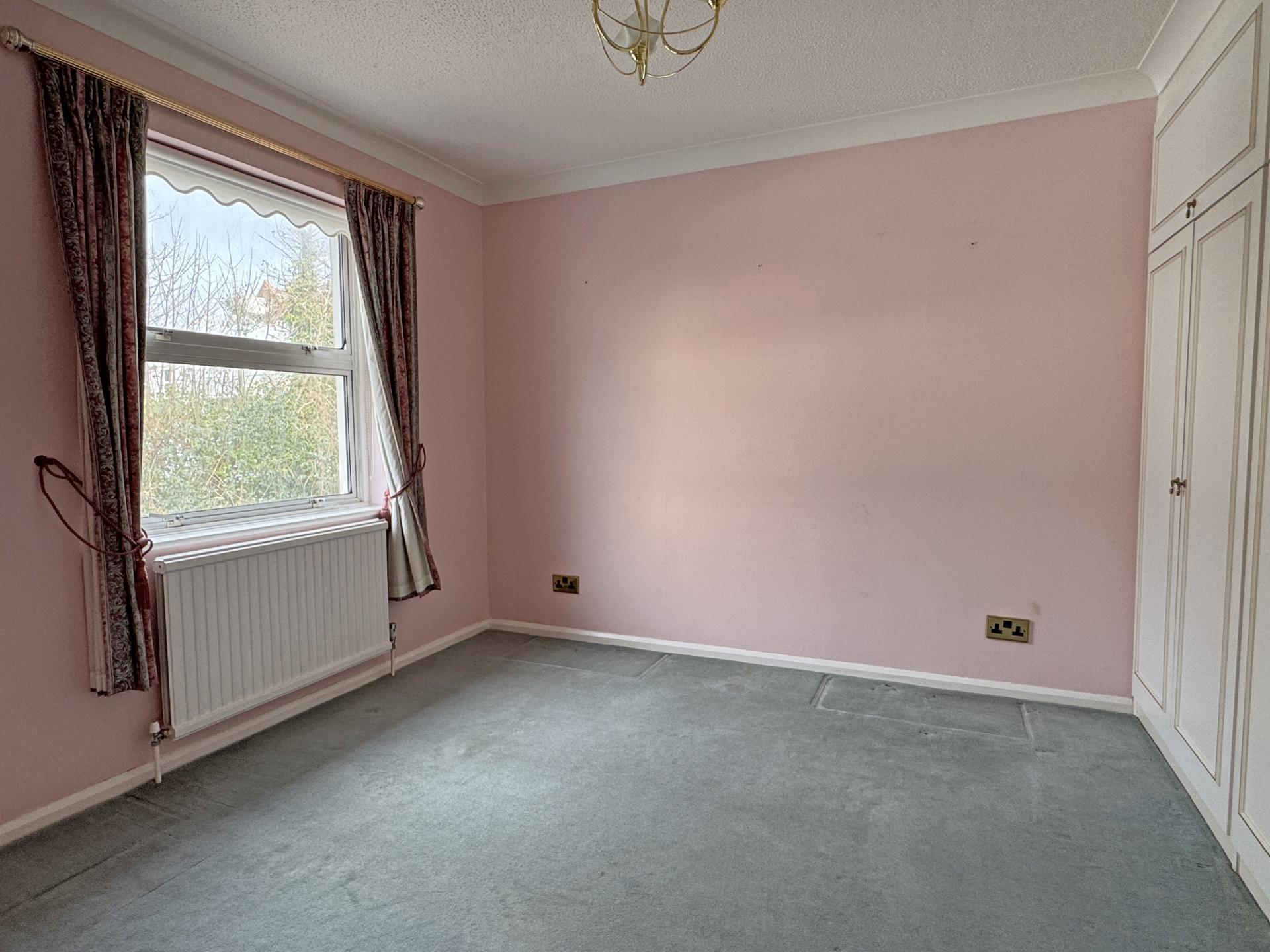 To the first floor a landing provides an airing cupboard along with access to the roof space with sliding ladder. The main bedroom also takes full advantage of the southerly aspect, having two windows and has a range of fitted wardrobes, drawer units and a fitted shower unit.