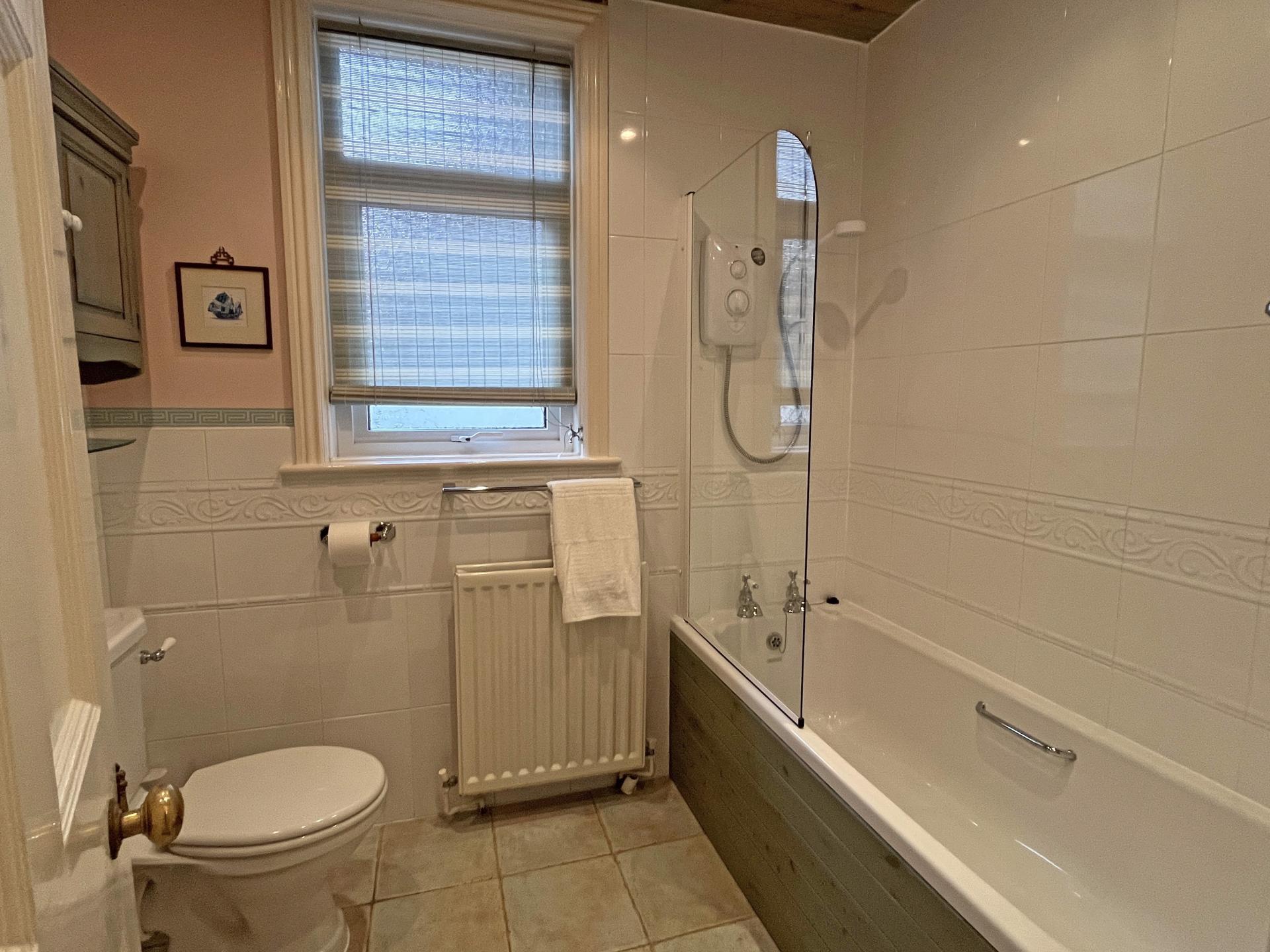 The flat offers two bedrooms, both enjoying a southerly aspect and both having fitted wardrobes. The main bedroom has an en-suite shower room, which comprises a walk-in shower along with WC and wash basin. There is also a separate bathroom, which is fitted with a white suite, has part-tiled walls, a tiled floor and comprises a bath with electric shower over, WC and pedestal wash basin.