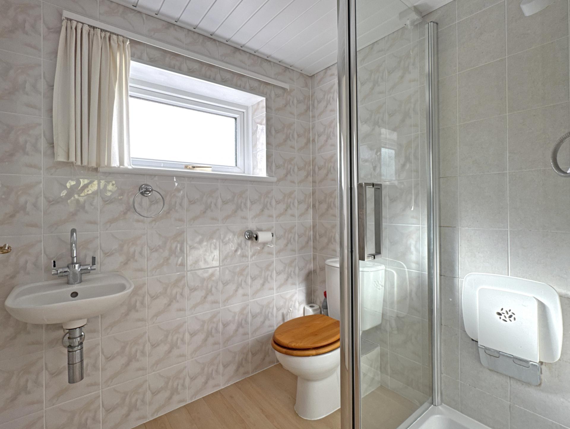 The main bedroom has an easterly aspect, built in wardrobes and an en suite WC. There is a second double bedroom, third single bedroom/study, a bathroom and a separate shower room.
