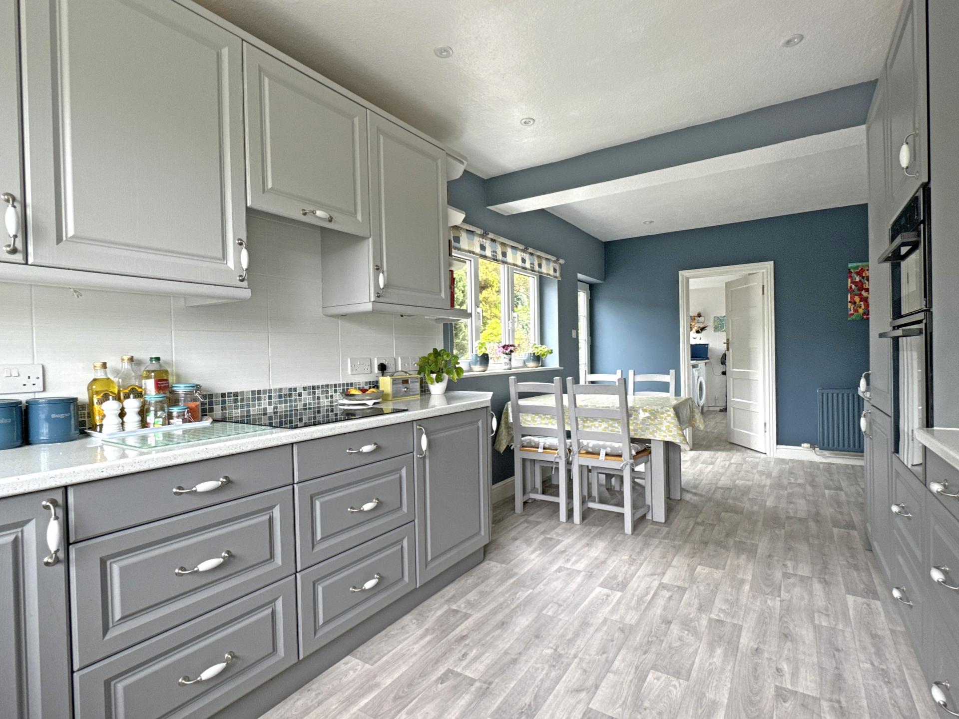 Offering flexible accommodation that has been greatly improved by the present owners is this impressive 1930’s detached house, situated at the top of one of the most desirable roads in Sidmouth. Once inside, the entrance hallway has a walk-in cloaks and storage cupboard and a well-appointed shower room with WC. A spacious, dual aspect kitchen/breakfast room is fitted with a comprehensive range of units, with a built-in fridge/freezer, dishwasher, oven and electric hob. An adjoining utility room provides further kitchen units, with space for a washing machine and fridge/freezer. A floor standing gas boiler serves central heating to the house.
