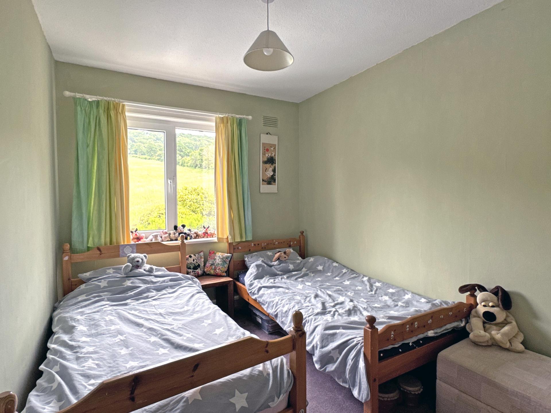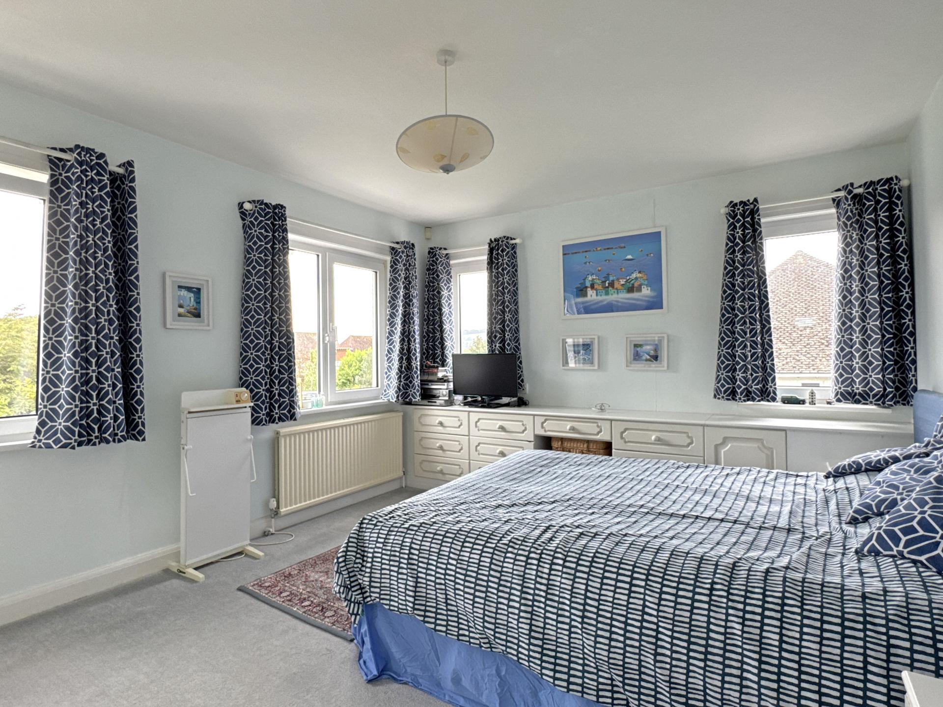 On the first floor landing, an airing cupboard houses the hot water cylinder and there is loft access via a ladder. The main bedroom suite comprises bedroom with a south facing bay window and balcony, taking in a stunning view south-westerly over the Valley to Muttersmoor and Peak Hill. A dressing area is fitted with wardrobes and leads through to an en suite shower room. There is a large second bedroom with fitted furniture, two further double bedrooms, a well-appointed bathroom with separate shower cubicle and a separate WC. Bedrooms three and four both take in a delightful view over a neighbouring field, rising up to the tree line across the top of Salcombe Hill.