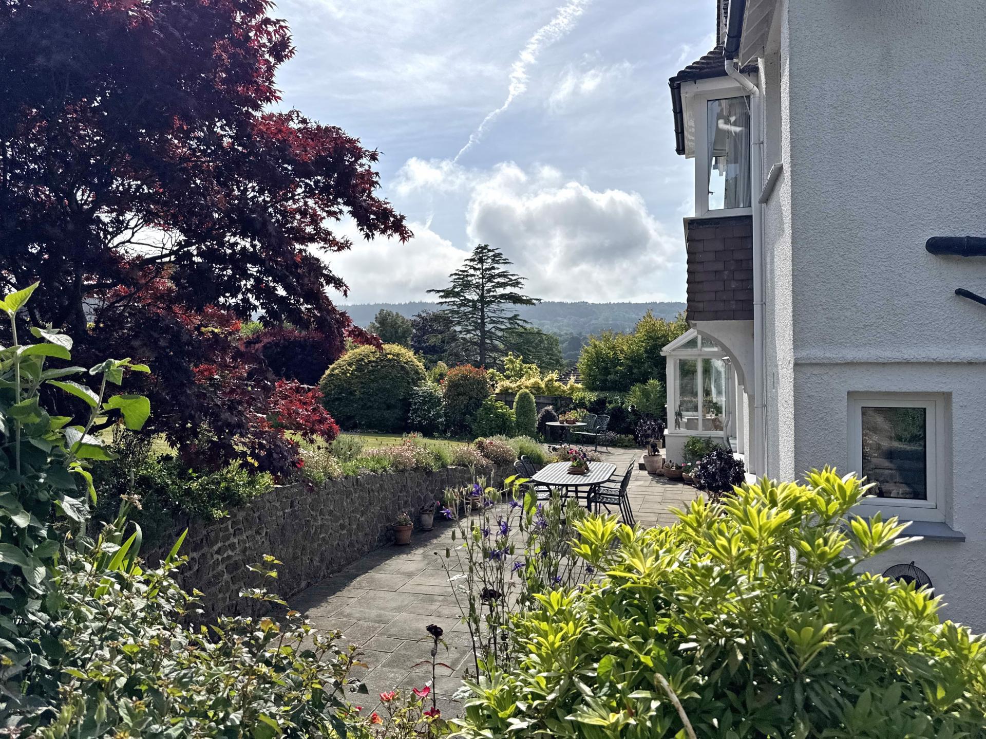 The house stands on a mature plot of approximately half an acre, with a south facing rear garden and glorious views over the Sid Valley to the west. There is ample parking and turning on the driveway, along with a double garage with power, light and an electric door. The rear comprises a large area of lawn garden with mature beds and borders and an expansive patio adjoining the back of the house providing plenty of space for garden furniture. There is an additional, raised patio making the most of the westerly views, enclosed vegetable plots and a potting shed.