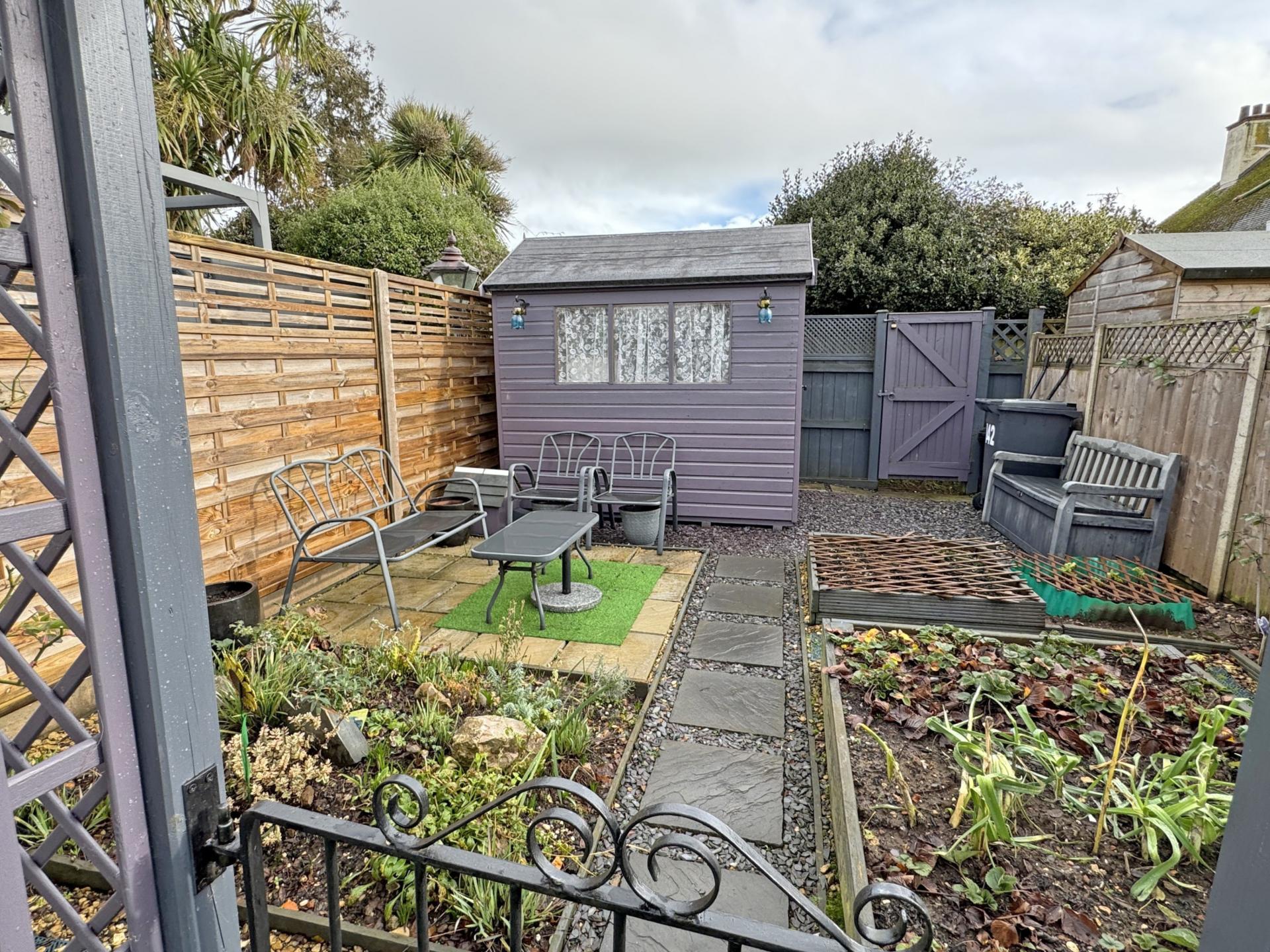 The garden is situated to the rear of the house and is beautifully presented, having pedestrian access into Sid Park Road. The garden comprises extensive patio and gravel areas and adjoining well stocked flowerbeds to provide interest throughout the year and there is a central fish pond. A further area of garden provides vegetable beds along with a further patio area and timber garden shed.