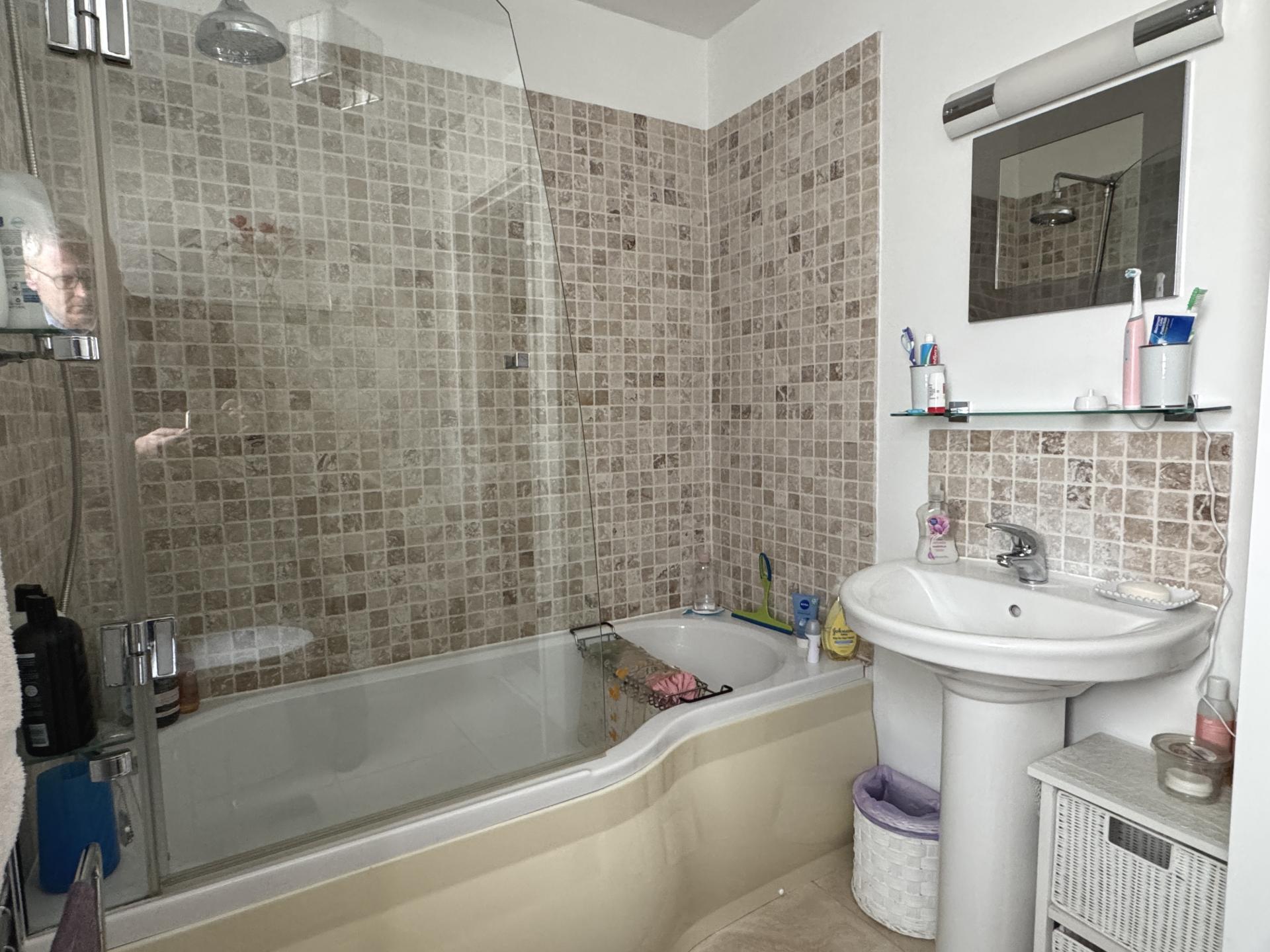 A spacious, top floor balcony flat, having breathtaking views over the town to the sea.