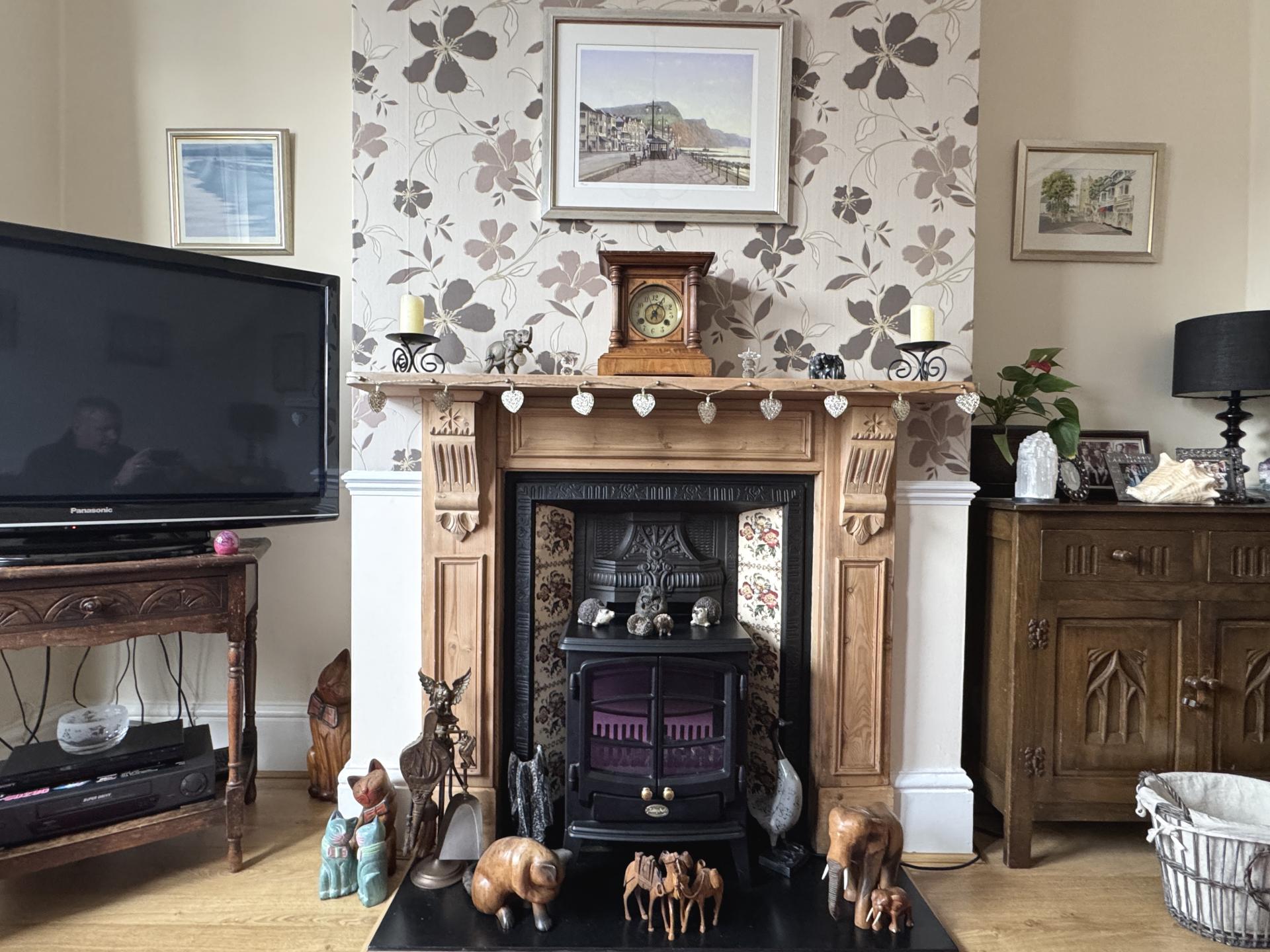 A recessed porch opens into an entrance lobby which in turn leads into the main reception hall which has the stairs rising to the first floor. The original two reception rooms have been knocked into one via an archway, the sitting room enjoying a westerly aspect, having a large bay window and feature fireplace with timber surround.