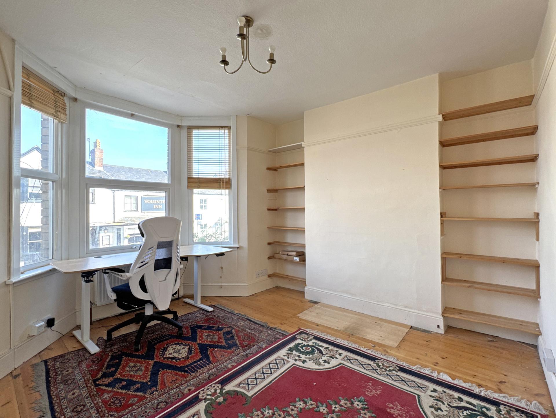 On the first floor the main bedroom has an east facing bay window and en suite shower room, there is a second double bedroom with a window/door onto a balcony and a main bathroom with separate shower cubicle, bath, basin with vanity unit, WC and space for a washing machine. On the second floor is a spacious third double bedroom with dual aspect windows to the front and rear. The view to the front extends over neighbouring property to Salcombe Hill beyond. There is useful storage on the half-landing.