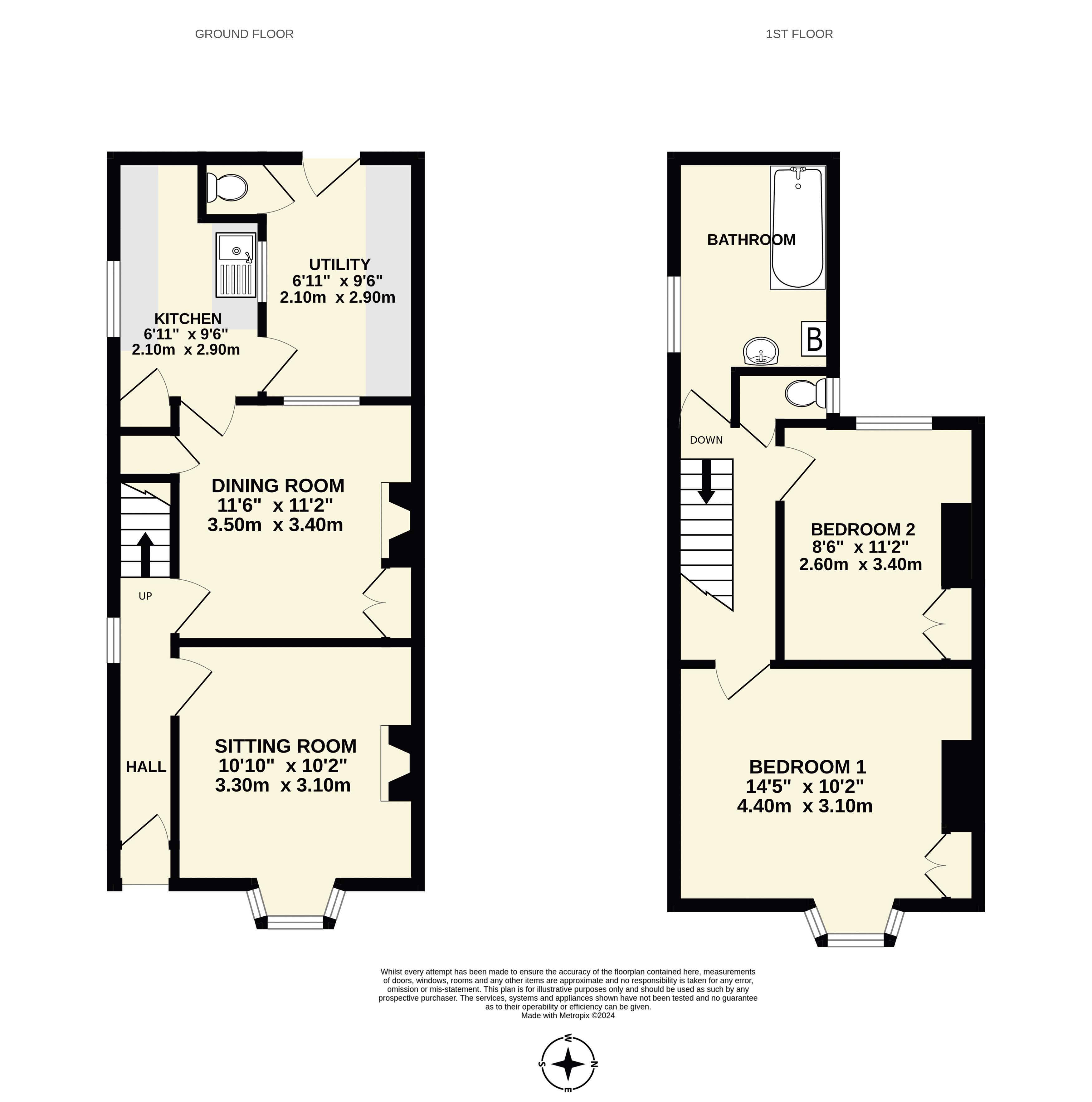 On the first floor, the main bedroom is a particularly good size with a front facing bay window, again having a superb view over the allotments and The Byes. There is a second double bedroom, bathroom and separate WC.