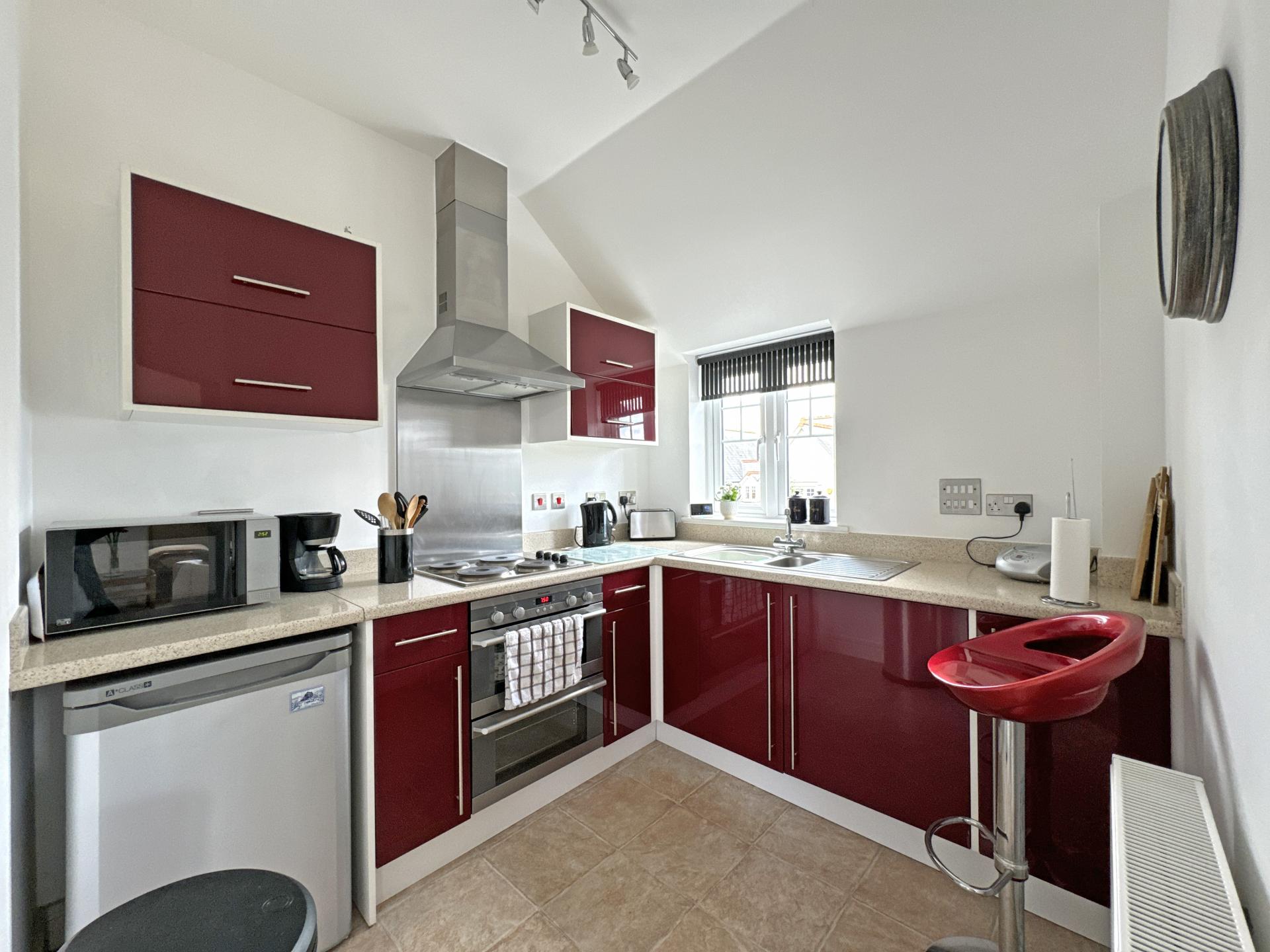 An inner hallway has a cupboard housing the electric boiler which supplies a traditional wet system with radiators. The main bedroom has a front facing westerly view with a built-in wardrobe and fitted bedroom furniture. The second bedroom looks to the rear, with a delightful view up Salcombe Hill to the east. Finally, there is a well appointed and modern shower room.