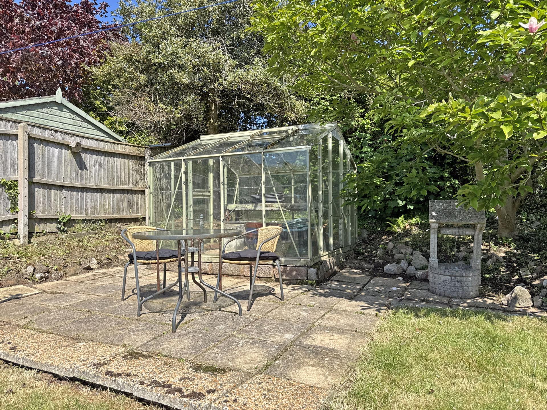 The front garden is laid to lawn with flowerbed borders and there are gated side paths leading to the rear. The rear garden is of a good size, predominantly laid to lawn, with a patio adjoining the back of the bungalow, timber garden shed, greenhouse and a second patio with views to Salcombe Hill. This attractive garden also offers a very good degree of privacy.
