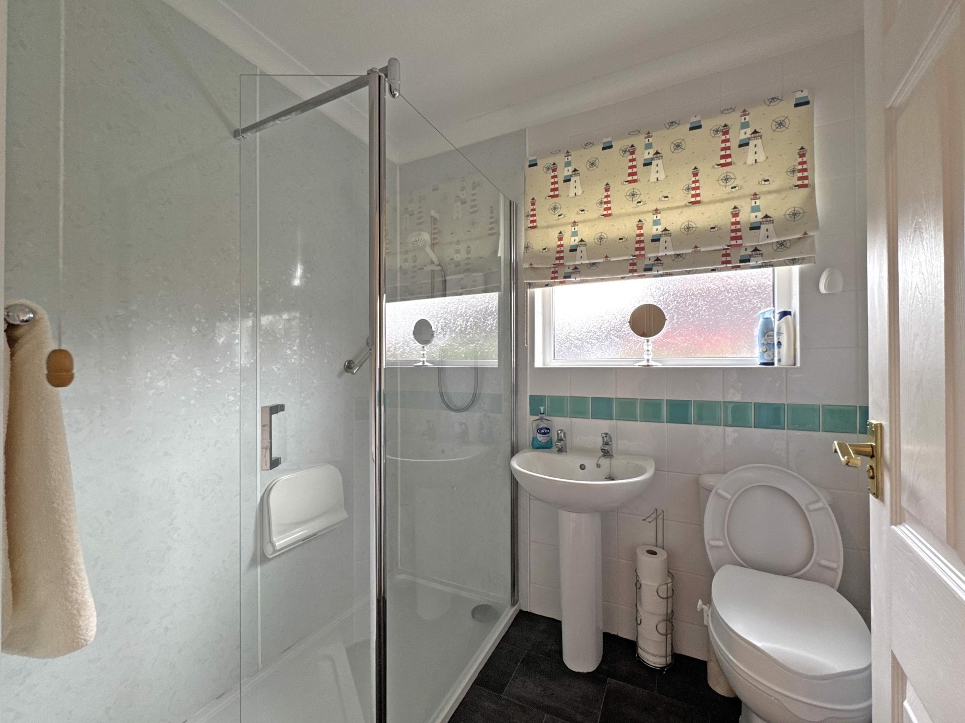 The main bedroom is a good size with built-in wardrobes and an en suite shower room. There is a second double bedroom, main shower room and separate WC.