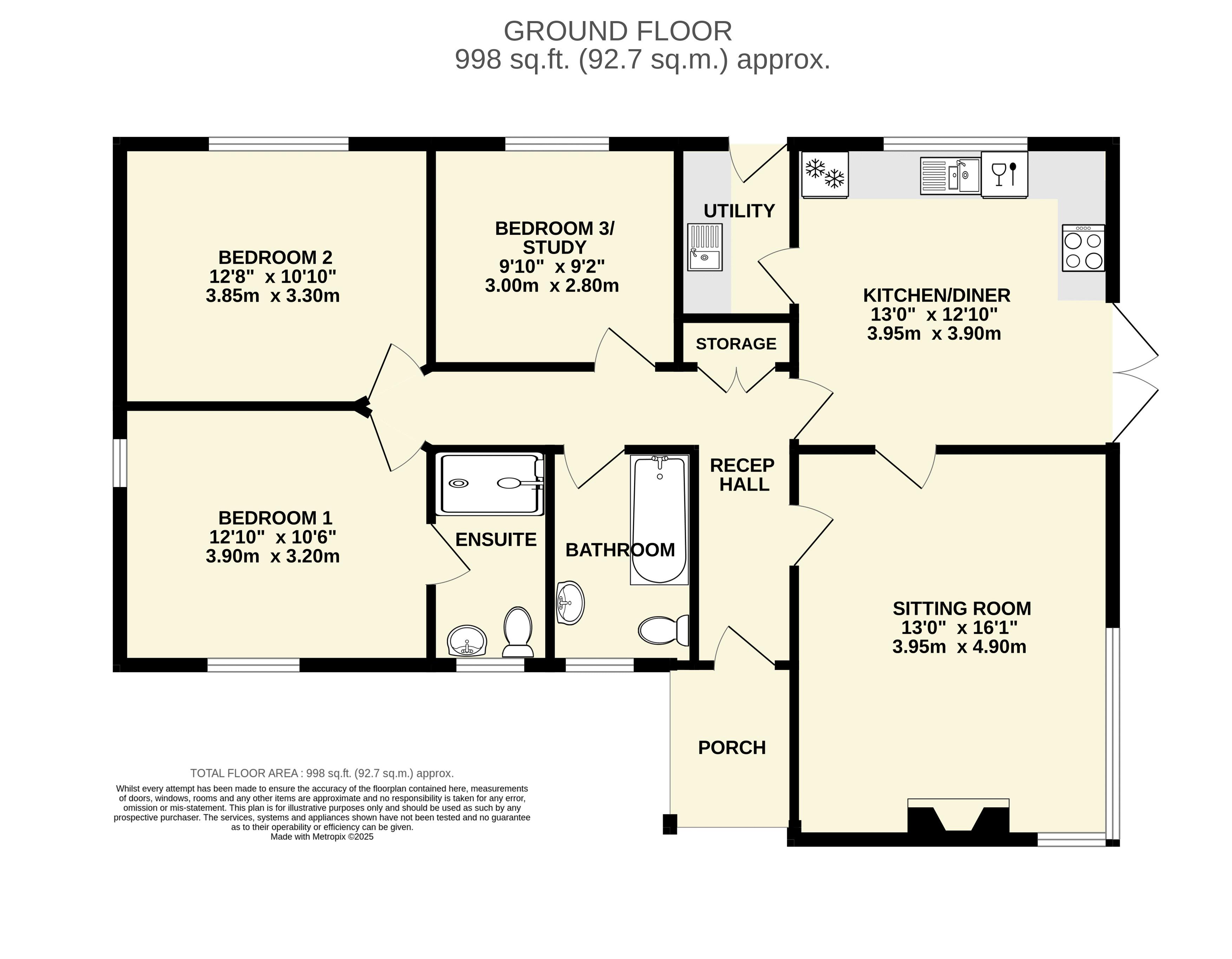 On entering the bungalow, a large covered porch and front door open into the reception hall, which has two sunlight tubes along with a storage/airing cupboard and access to the roof space. The sitting room has a fireplace and feature corner window that overlooks the garden and takes full advantage of the east and south aspect.