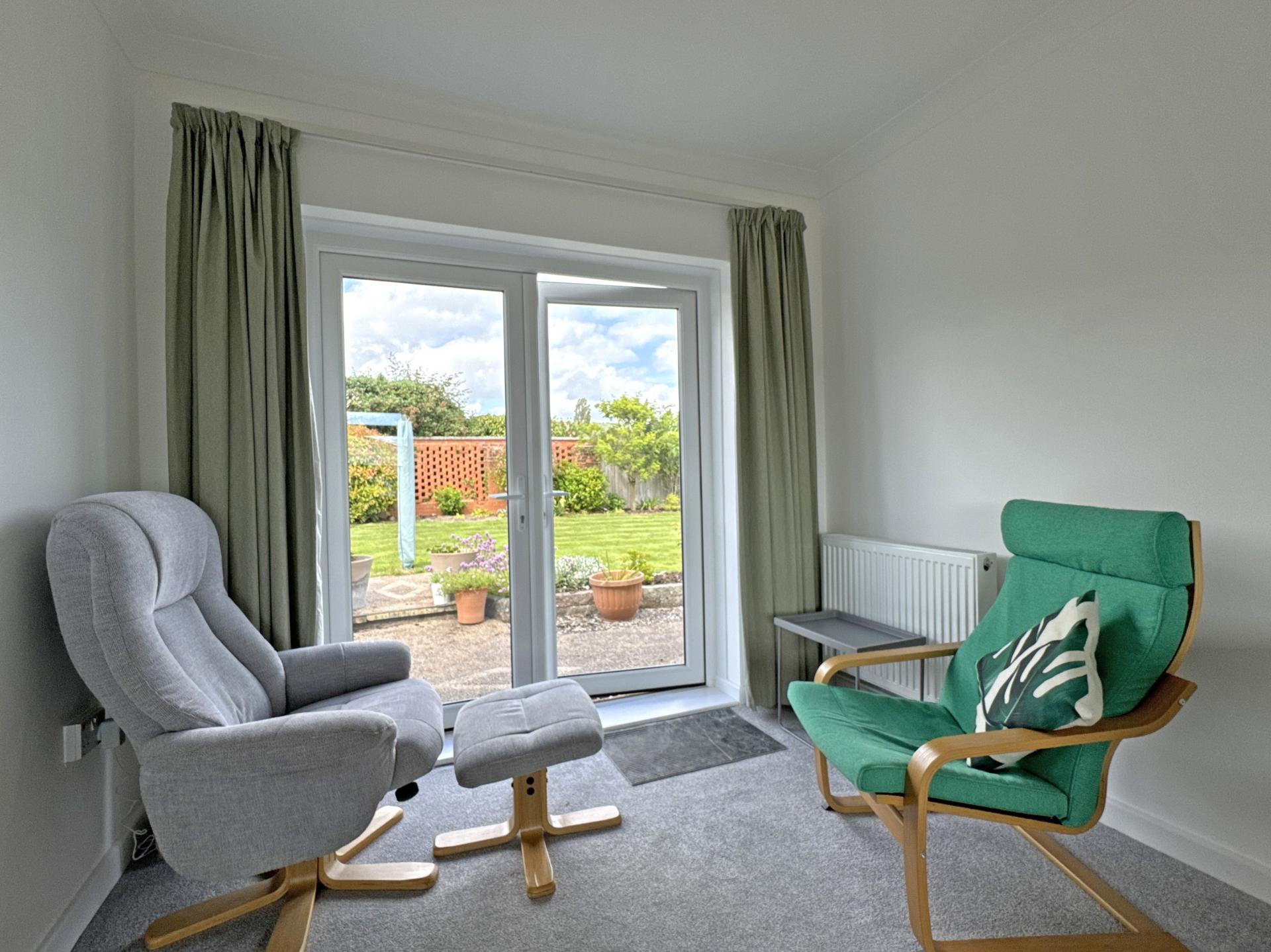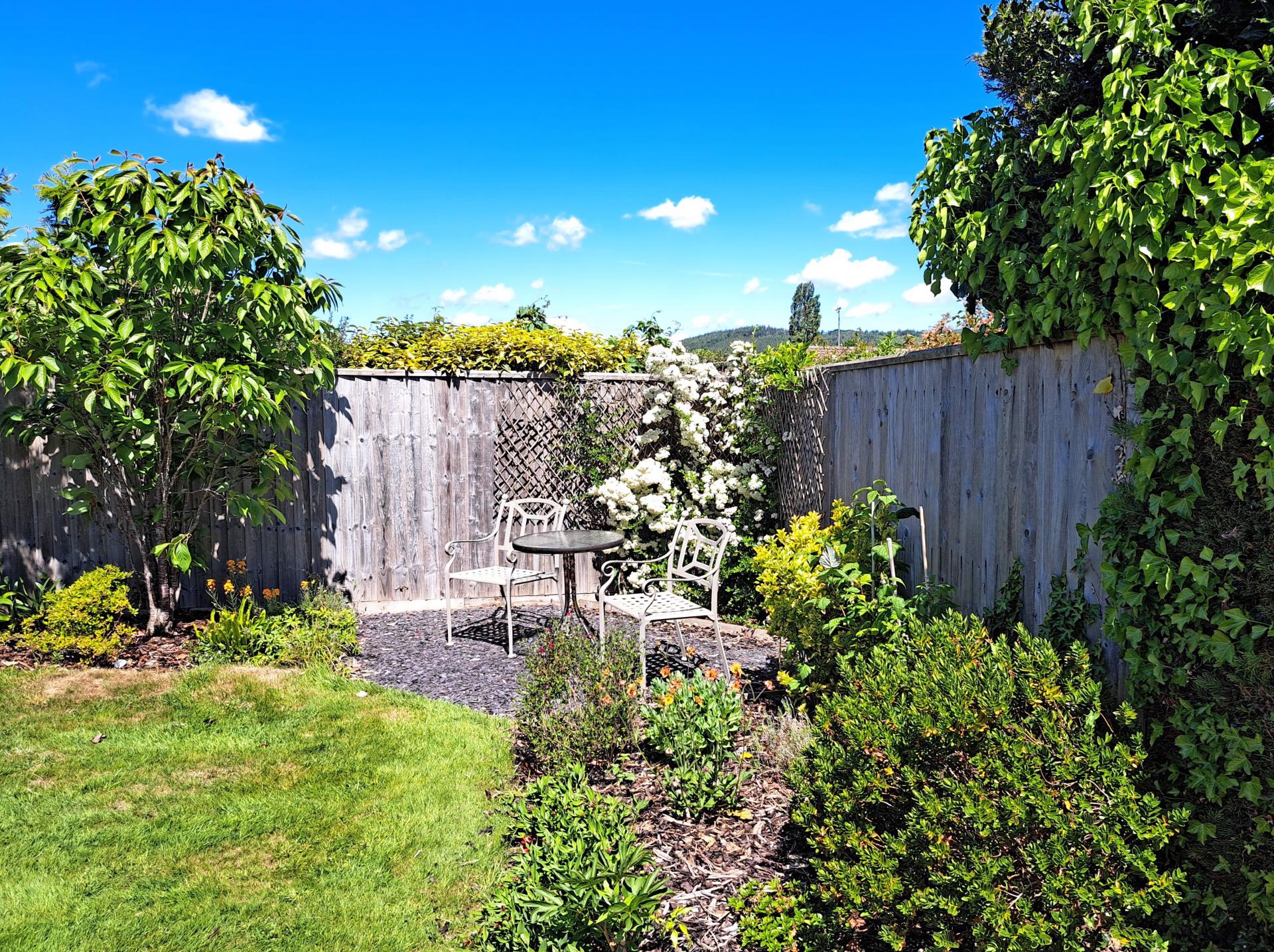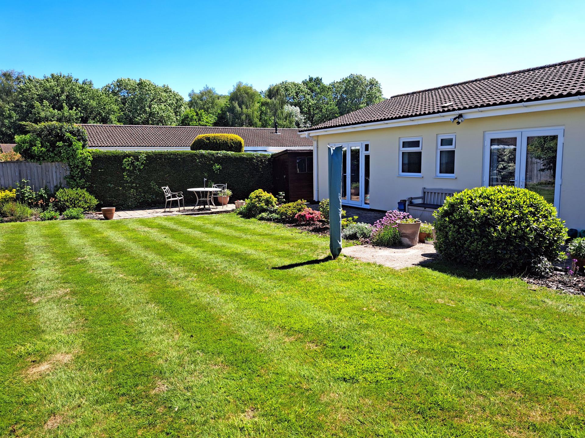 The bungalow stands on a level plot, with well-tended gardens, driveway and gravel parking and a single garage that has planning permission for conversion into a third bedroom with en suite WC. The permission was obtained in 2022 and also includes the creation of an en suite to bedroom one. There is lawn garden to the front and side and to the rear an attractive combination of lawn, with well stocked beds and borders. The rear garden offers a very good degree of privacy, with patio adjoining the back of the bungalow, further seating area and timber garden shed.