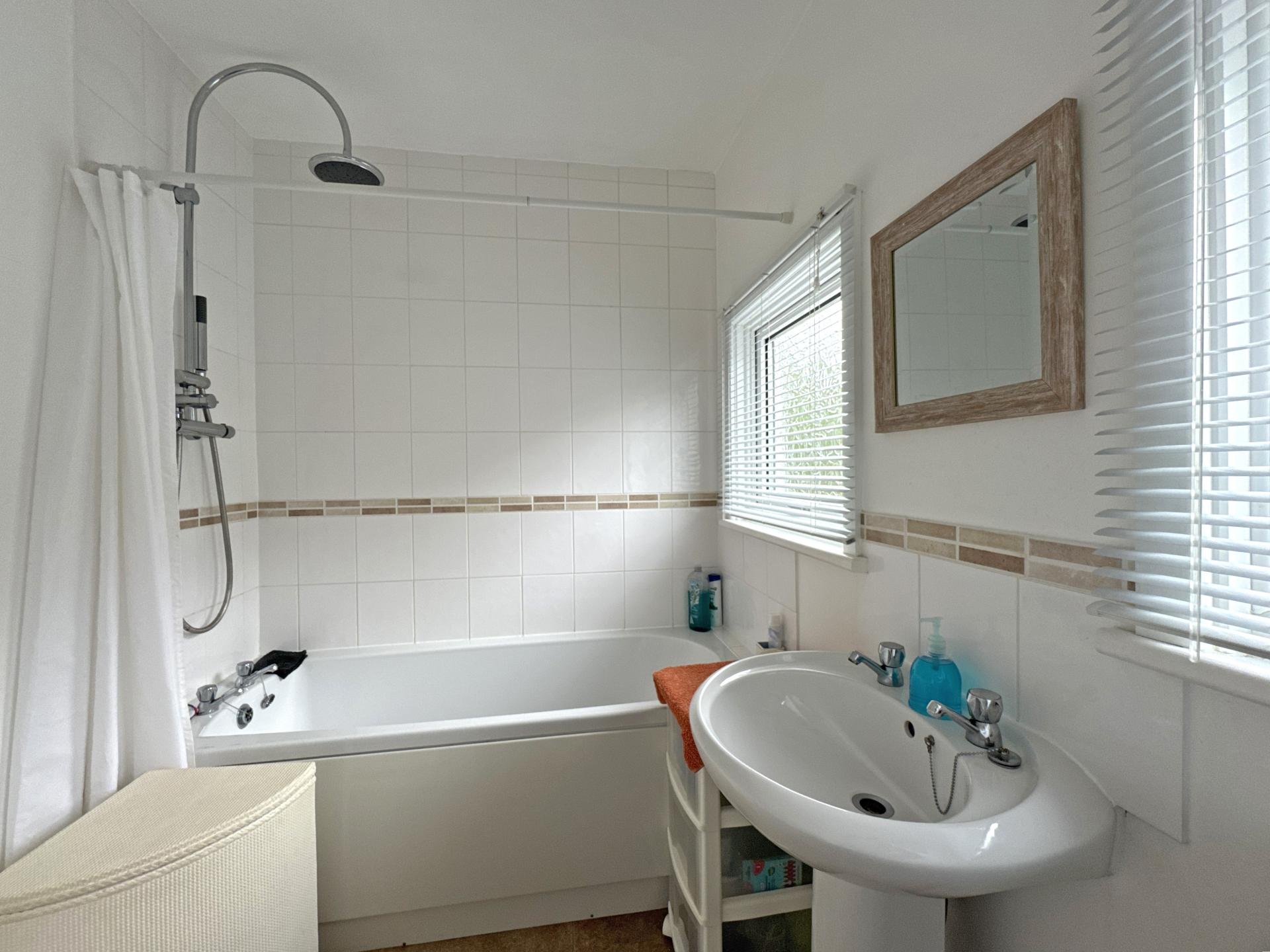 The first floor landing has two, south facing Velux windows bringing good light to both the hallway and landing. The main bedroom is of a good size with two built in wardrobes and a west facing window to the front aspect. Bedroom two is also a good size double room with built in wardrobe and window to the rear, taking in a stunning view over the Sid Valley and along Salcombe Hill. Finally, the bathroom is fitted with a white suite, having a mains shower over the bath.