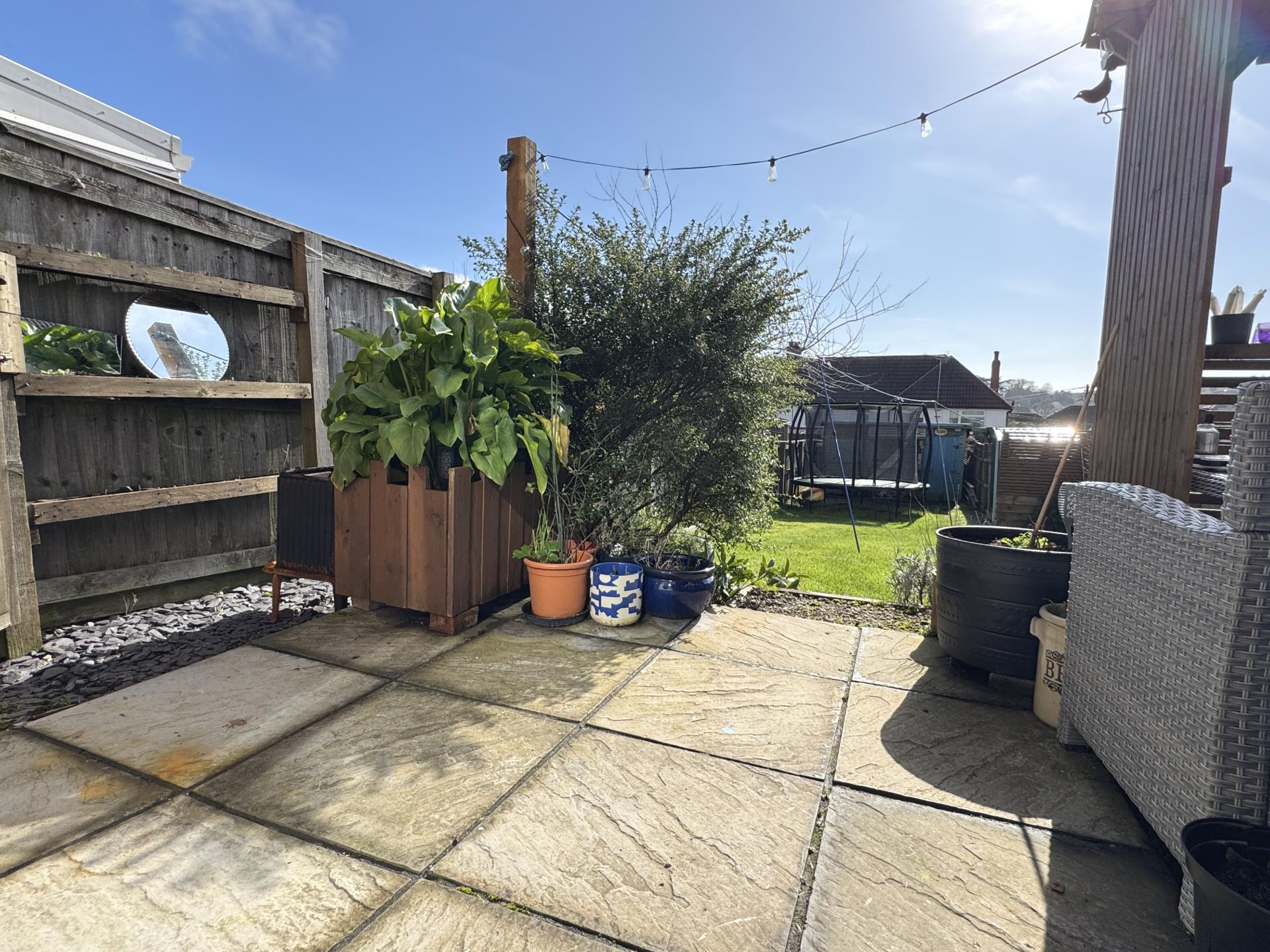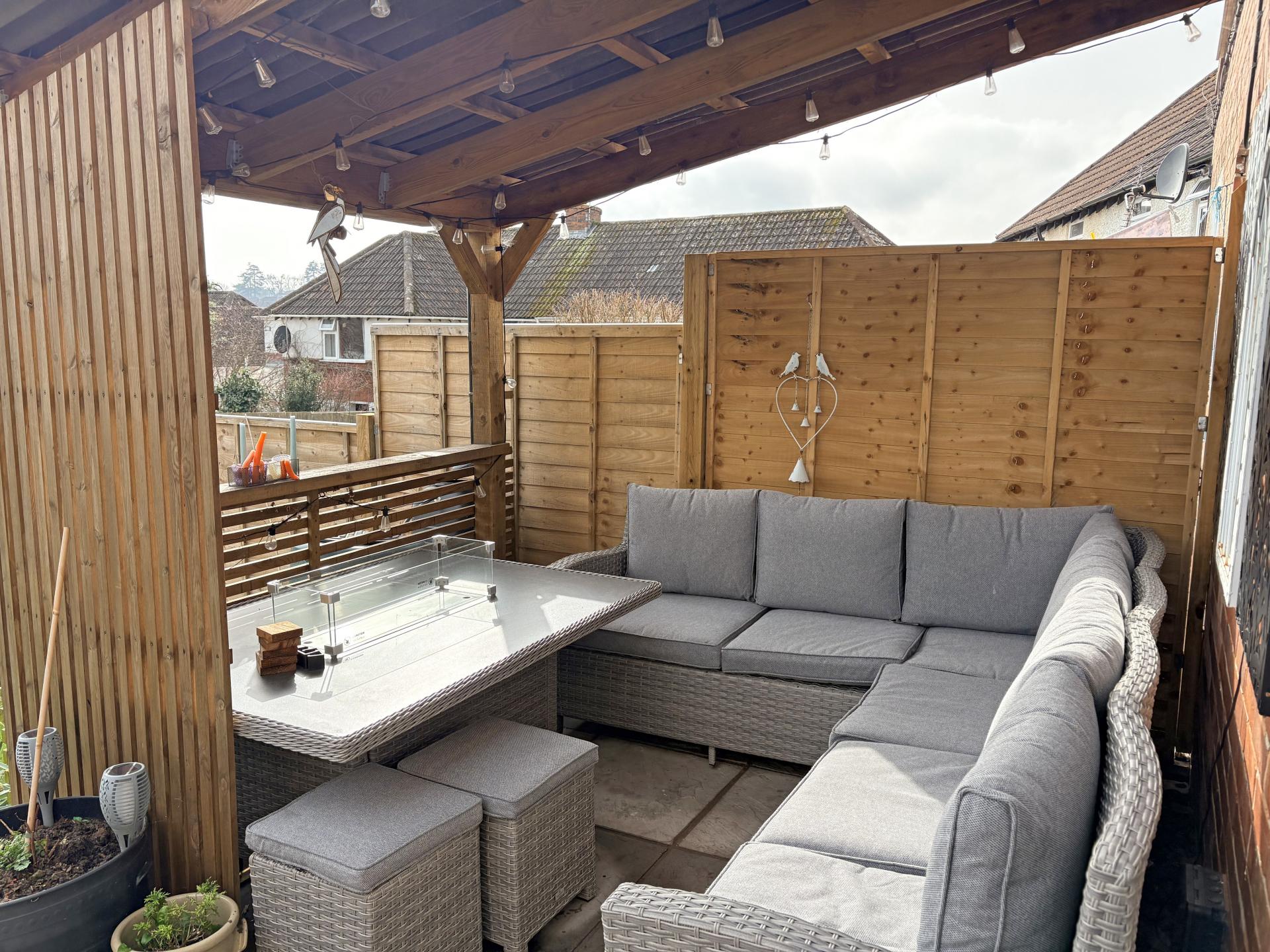 The majority of the garden is to the rear of the house and is mainly laid to lawn with adjoining shrub borders and having three garden sheds. Adjoining the rear of the house is a patio area that extends into a covered seating area, all taking full advantage of the southerly aspect. Adjoining the front of the house is a further area of garden which is laid to lawn and has a bin store off. A shared passageway with next door connects the front and rear garden.