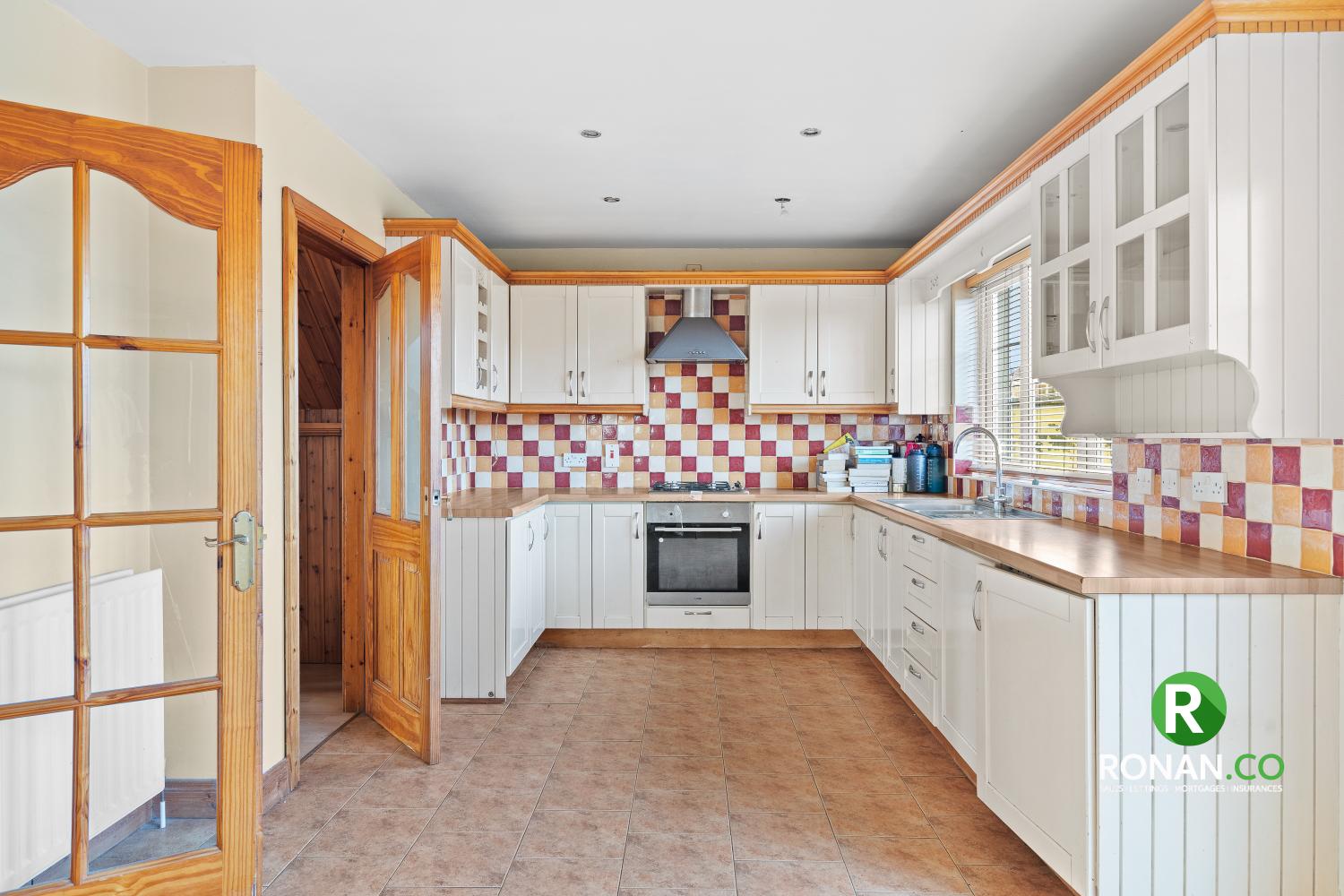 Tiled Flooring, Tiled Walls, Gas Hob, Electric Oven, Patio Doors, Double Radiator