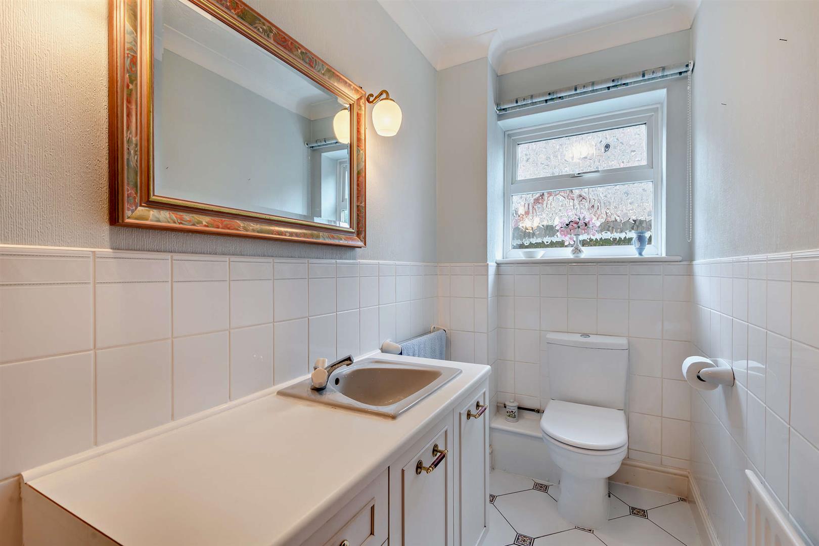 Cloakroom - Low level WC. Wash hand basin within vanity unit. Tiled flooring. Double glazed window to side elevation.