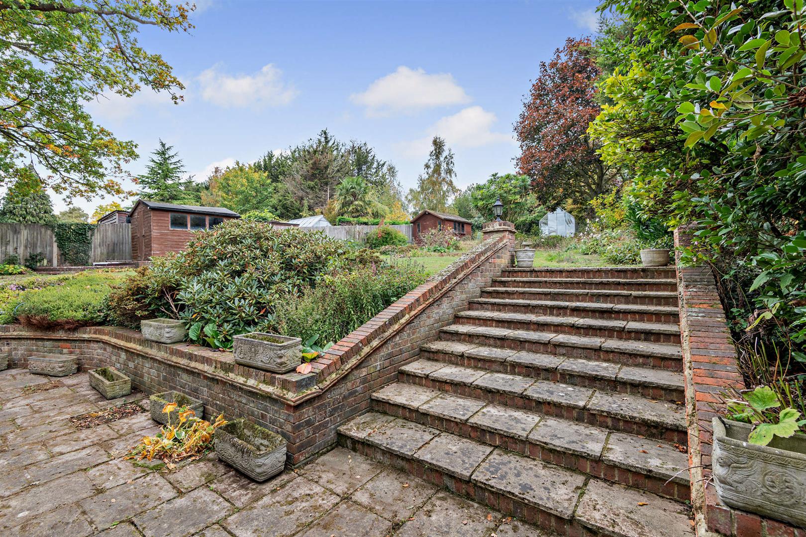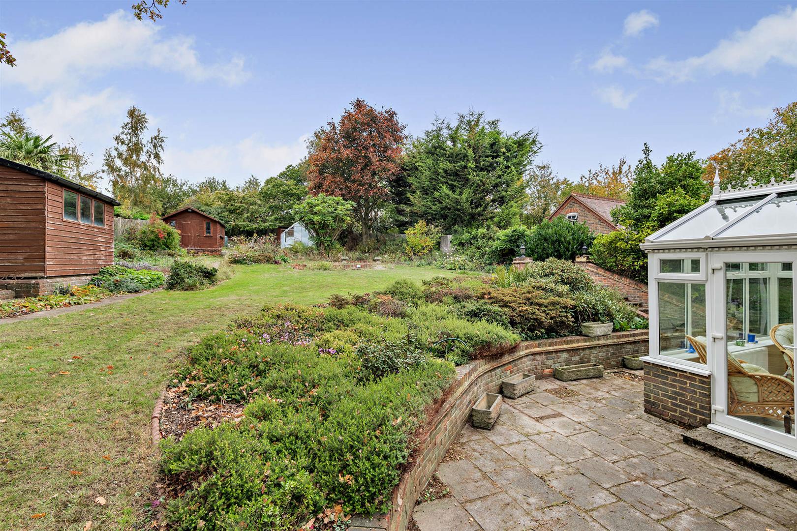 Gardens - The FRONT GARDEN has well-screened boundaries with mature shrubs and trees. Side access leads to a very good sized REAR GARDEN with an extensive terrace immediately behind the house with steps leading up to an area of lawn with well-stocked flower and herbaceous borders. A former vegetable garden. The gardens have a variety of both specimen and ornamental trees including a mature oak, maple and sweet chestnut. Set in the gardens are three substantial garden sheds and a greenhouse. The gardens themselves offer a lovely private setting and are a feature to the house.