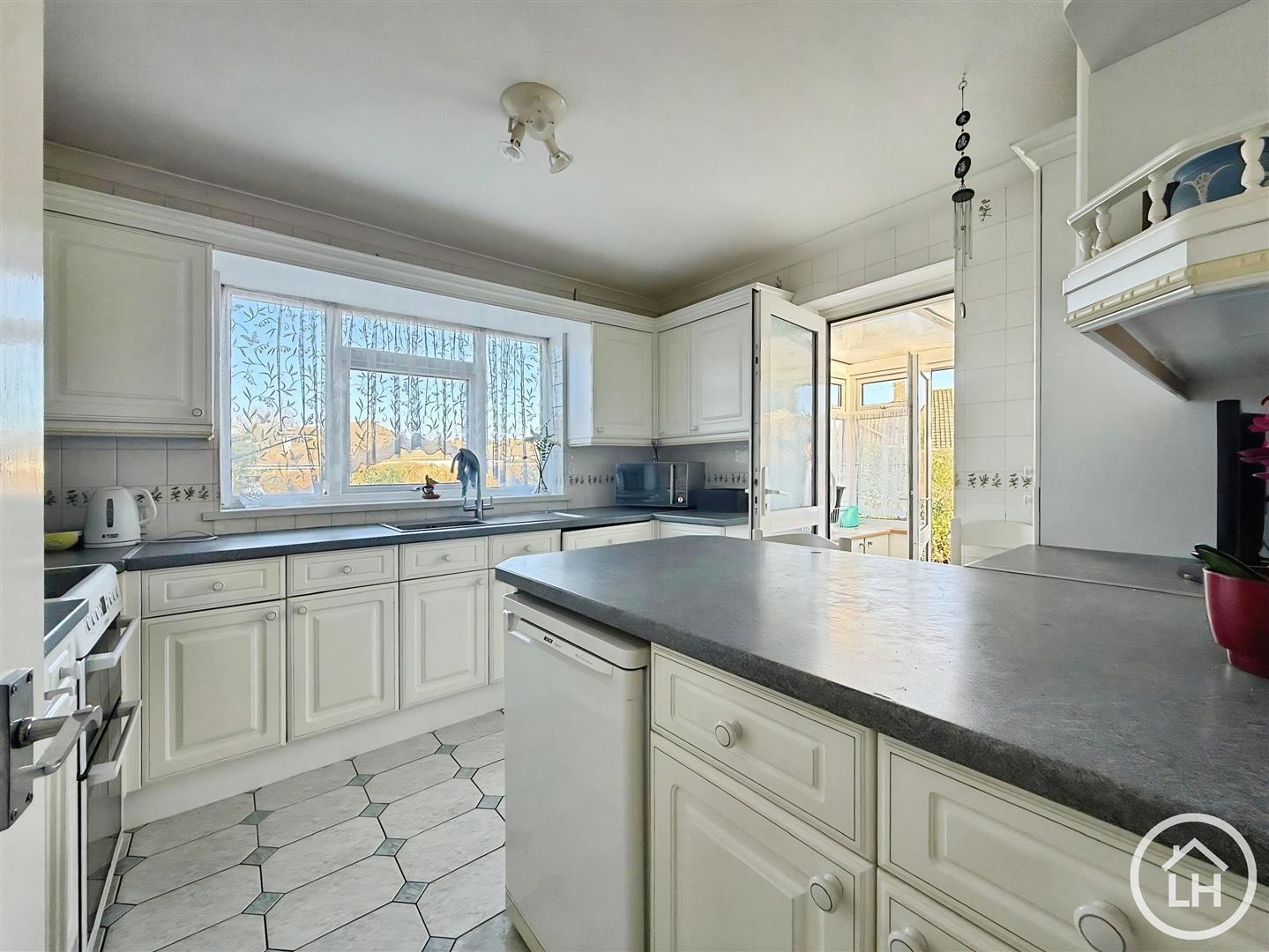 Property Overview - Inside, opens into a central hallway that gives the property a nice, traditional bungalow feel. To the front, the extended lounge/diner runs the full depth of the home, providing plenty of room for both a comfortable seating area and a dedicated dining space. The kitchen is a real highlight, fitted with worktops around the edge of the room plus a central island/breakfast bar - perfect for casual meals, coffee with friends or extra prep space when you're cooking.