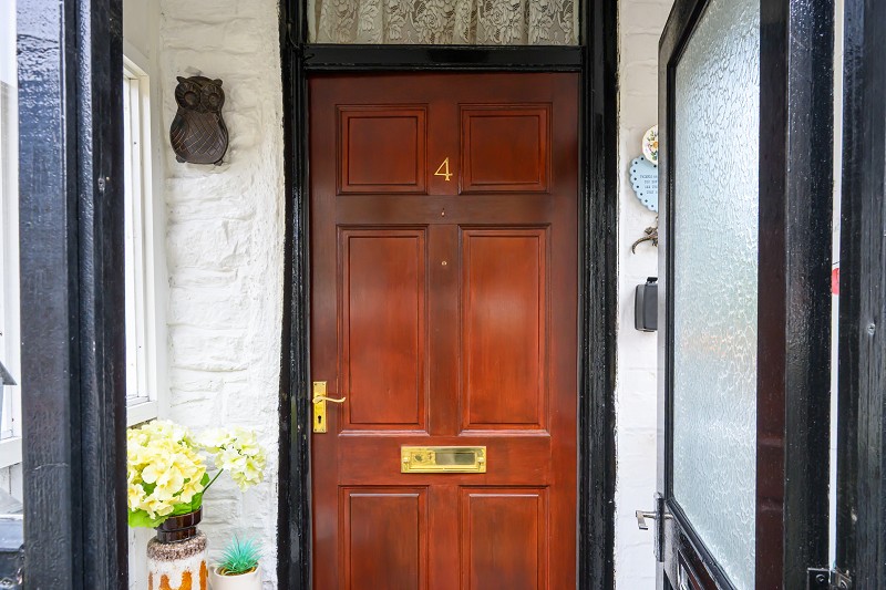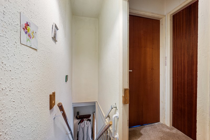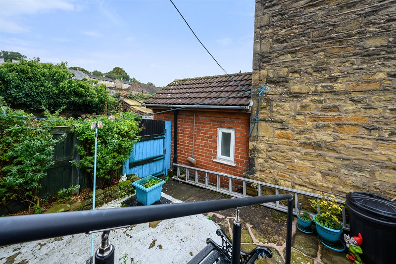 The property features a cosy layout with two bedrooms and a bathroom upstairs.