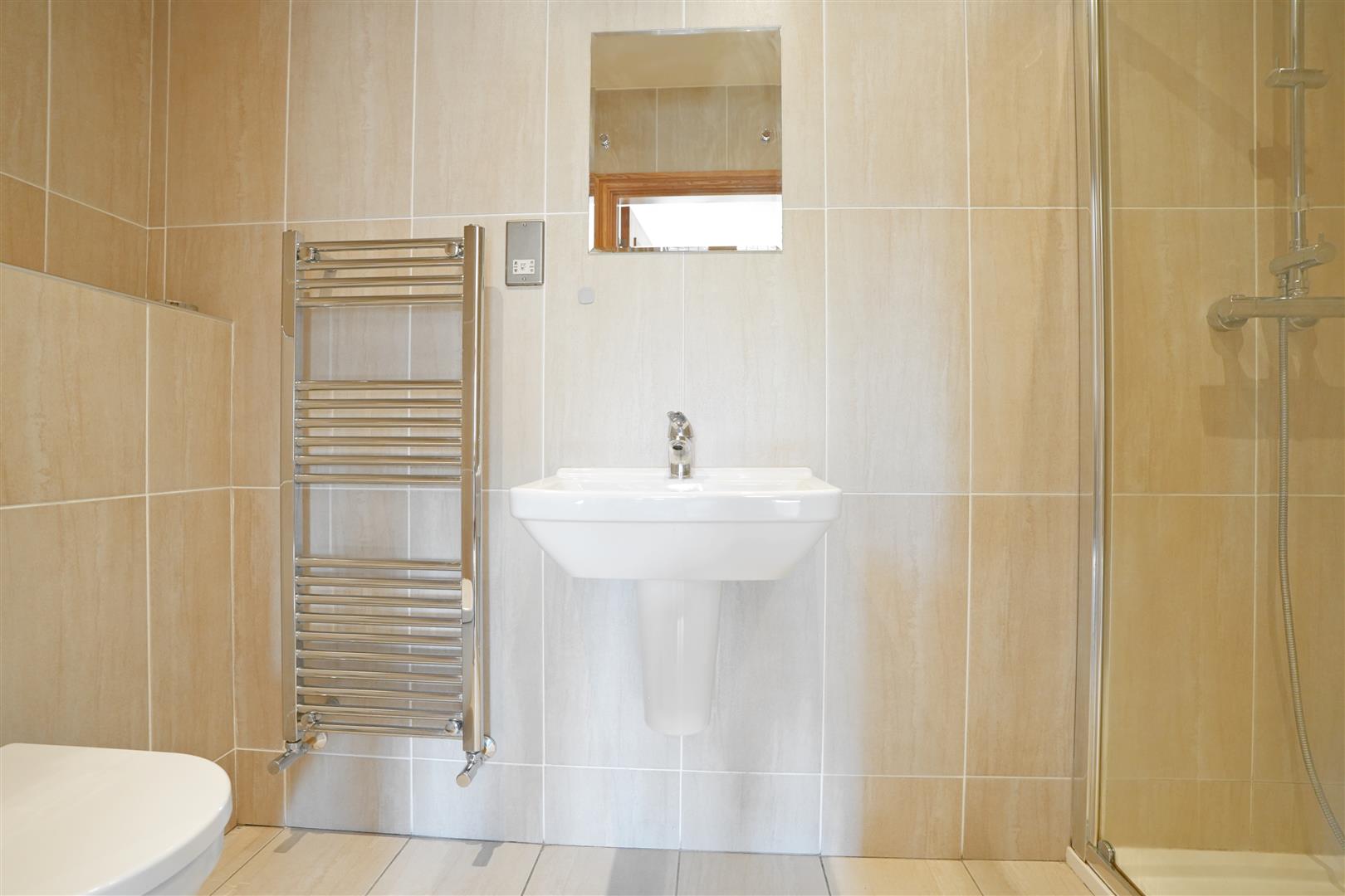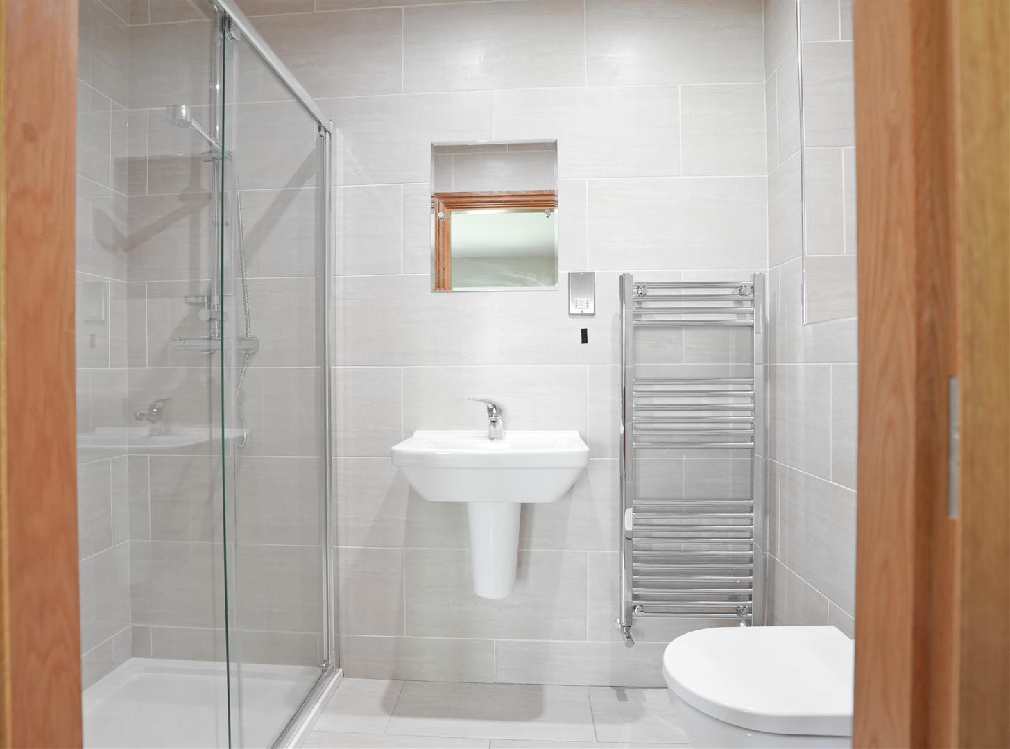 En-Suite - Wash hand basin. Low flush W.C. Walk-in shower. Partially tiled. Chrome towel radiator.