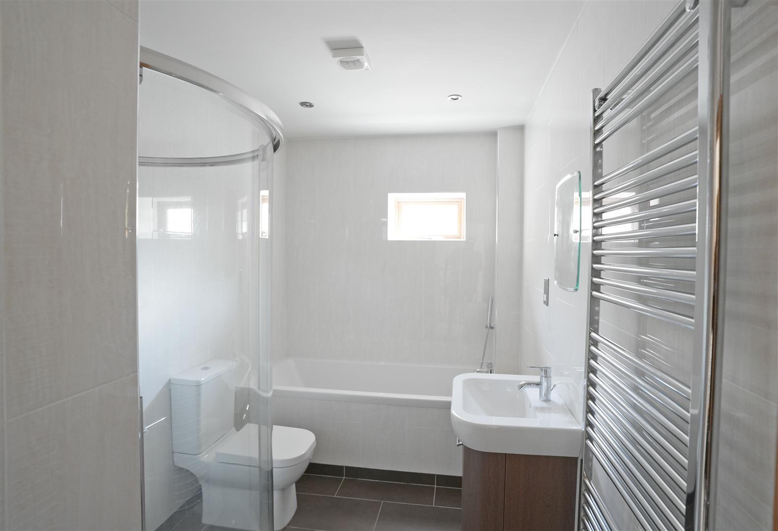 Bathroom - Vanity wash hand basin. Low flush W.C. Bath. Separate shower cubicle. Fully tiled. Chrome towel radiator. Double glazed window to side elevation.