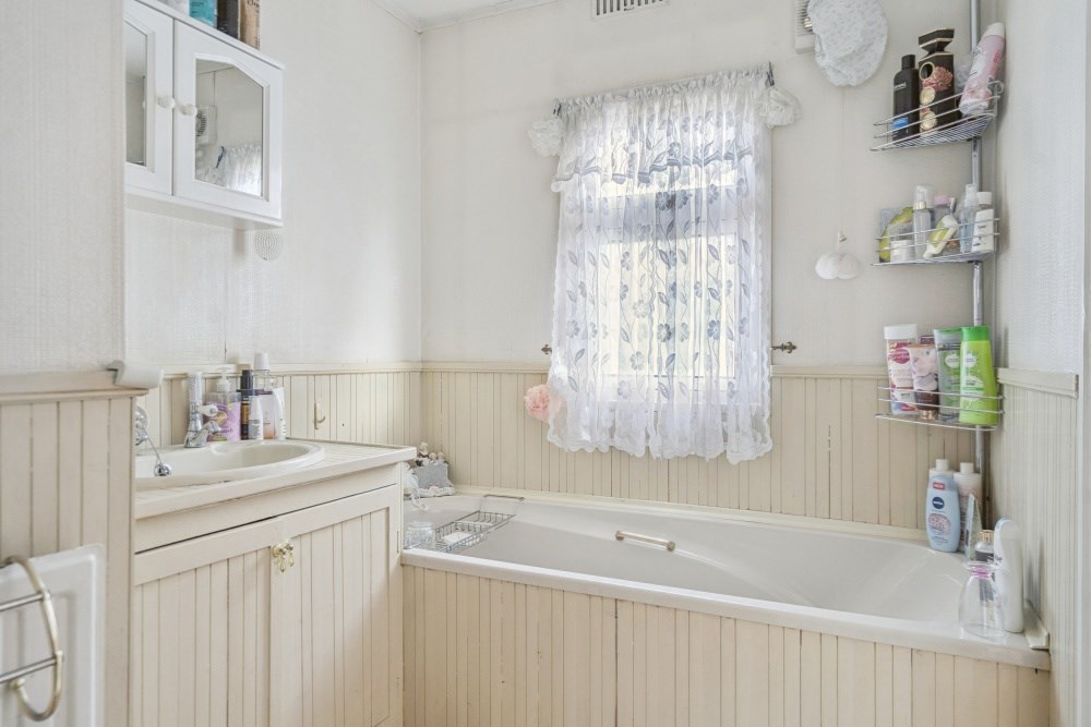 Upon entering the property that is set back from the road, you are greeted by ample parking spaces providing convenience for both residents and guests as well as a gate that can be opened to give you access to the well-maintained garden. The exterior provides a welcoming atmosphere.